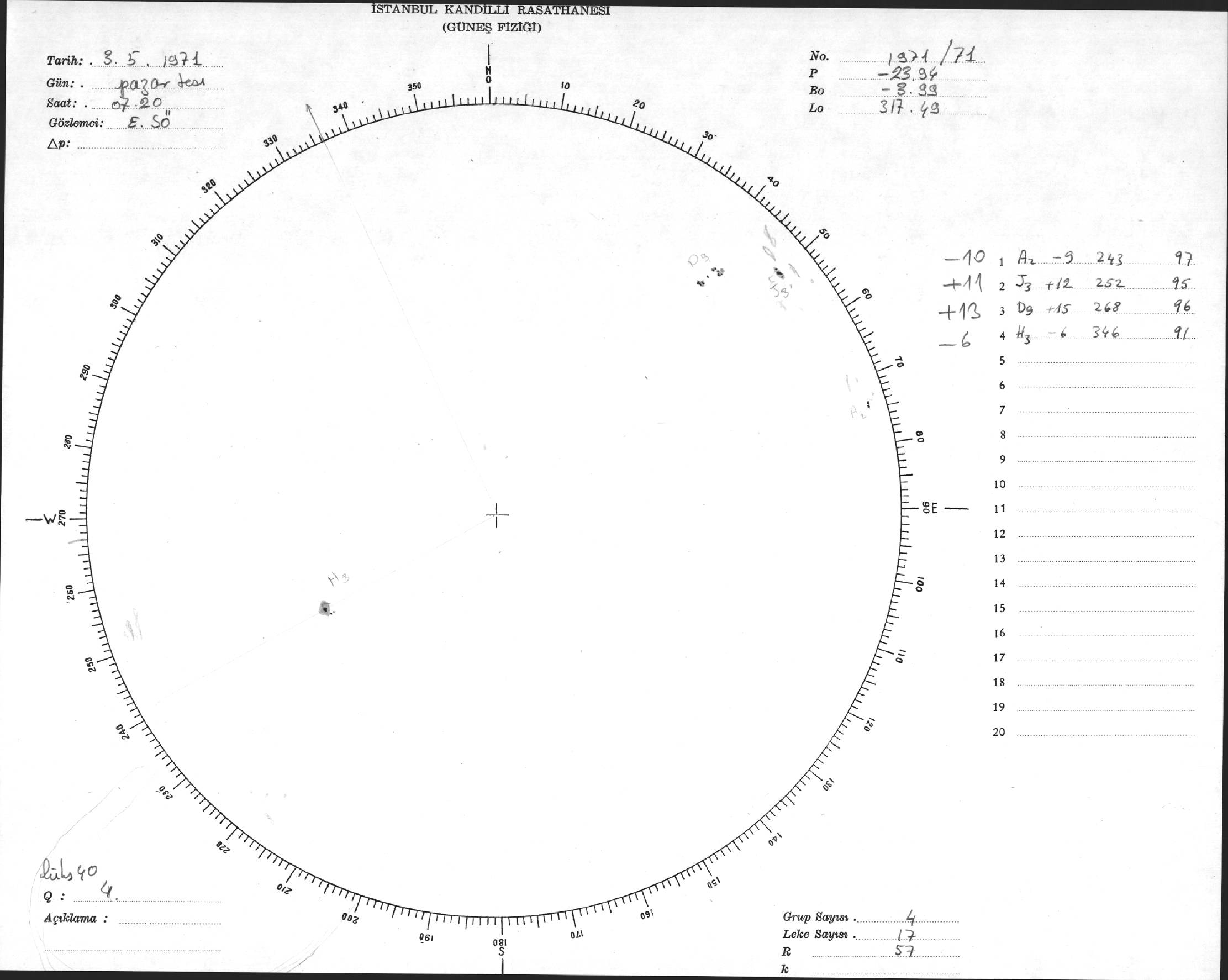 Güneş Lekesi Çizimi - 03.05.1971
