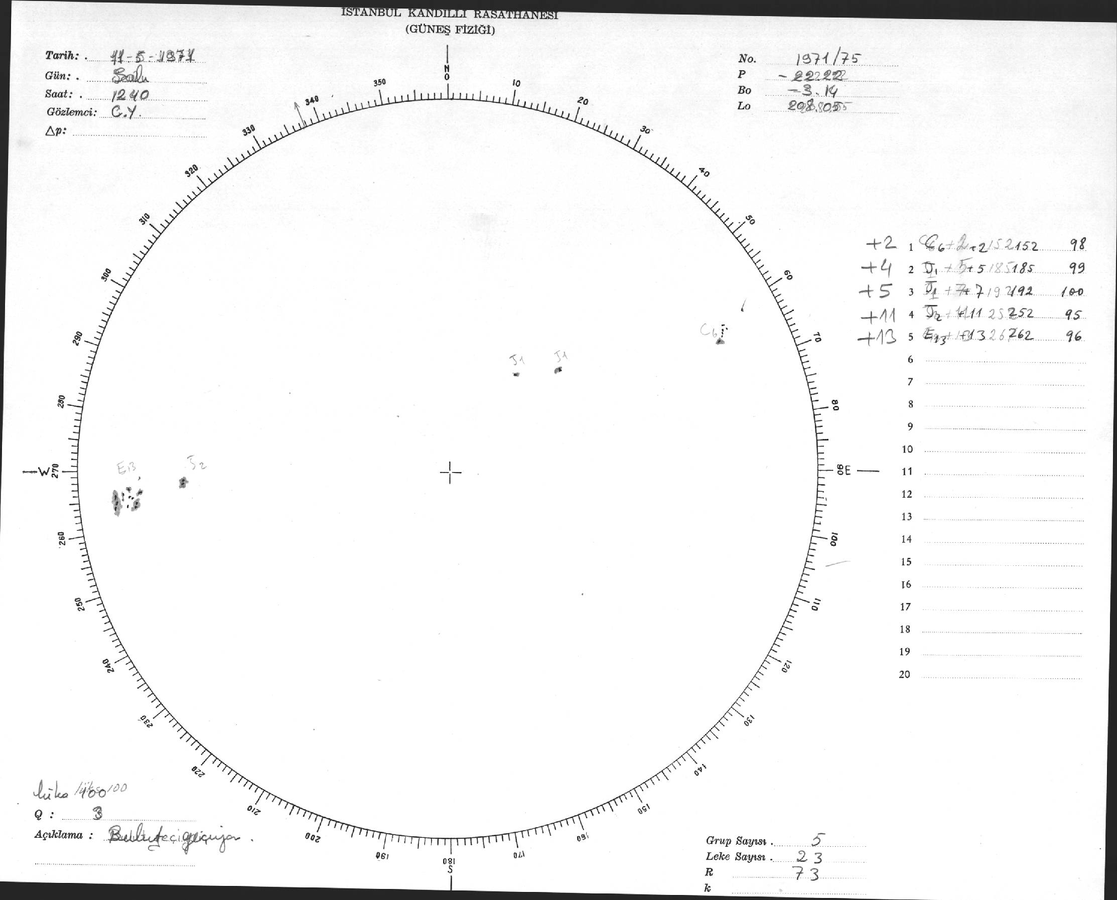 Güneş Lekesi Çizimi - 11.05.1971