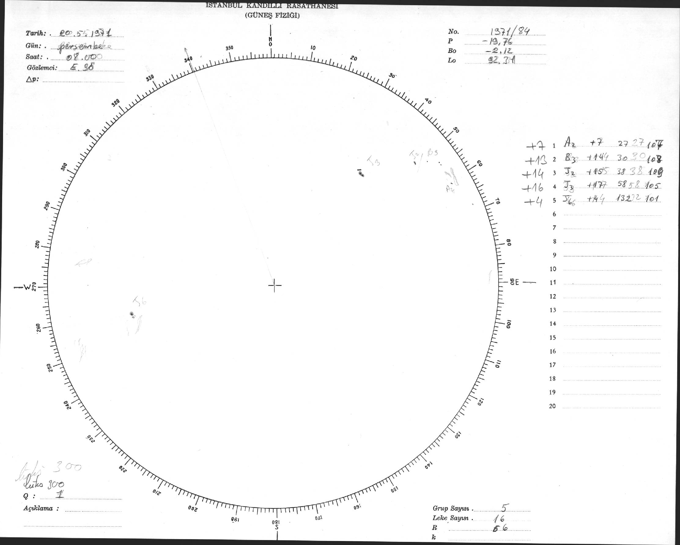 Güneş Lekesi Çizimi - 20.05.1971