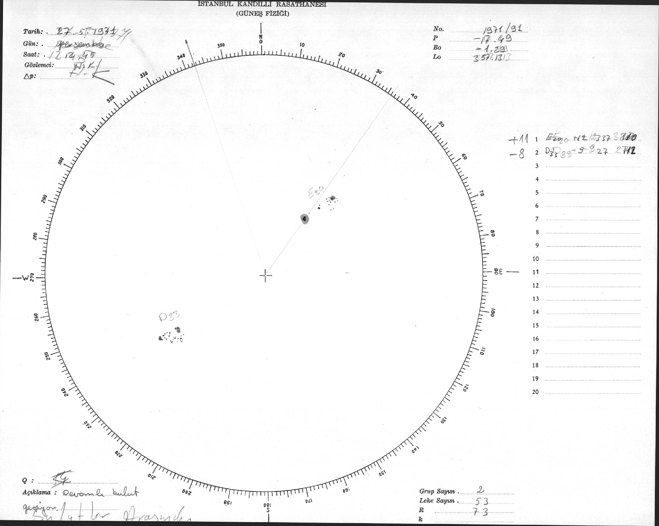 Güneş Lekesi Çizimi - 27.05.1971