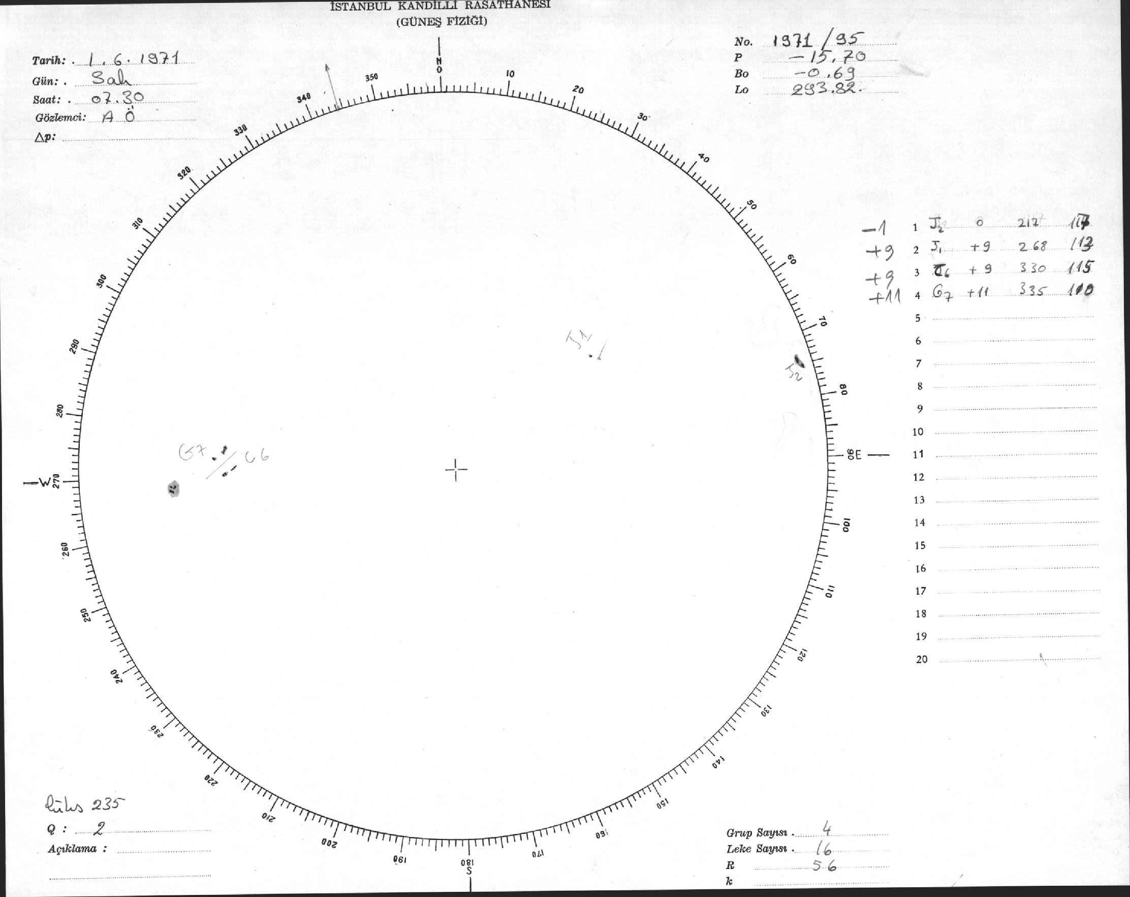 Güneş Lekesi Çizimi - 01.06.1971