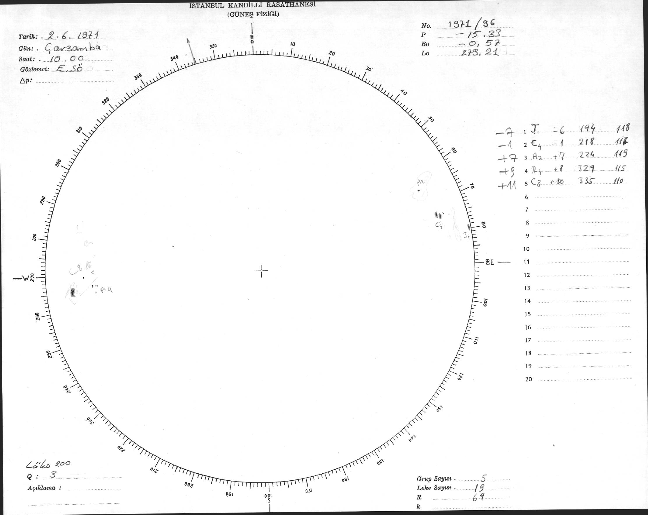 Güneş Lekesi Çizimi - 02.06.1971