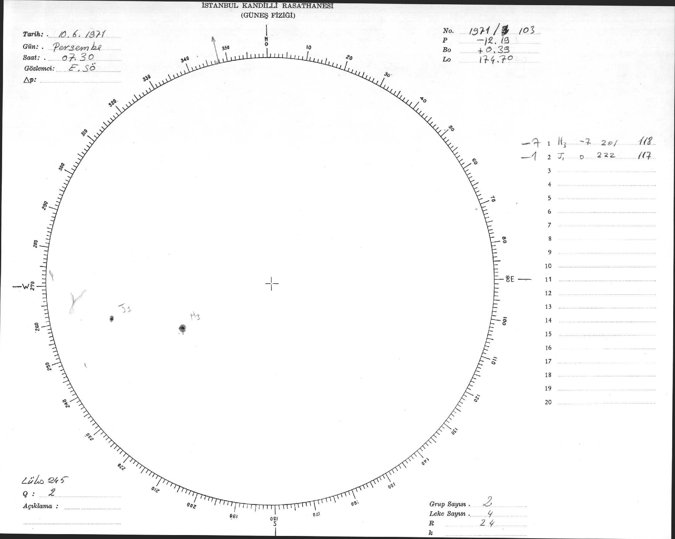 Güneş Lekesi Çizimi - 10.06.1971