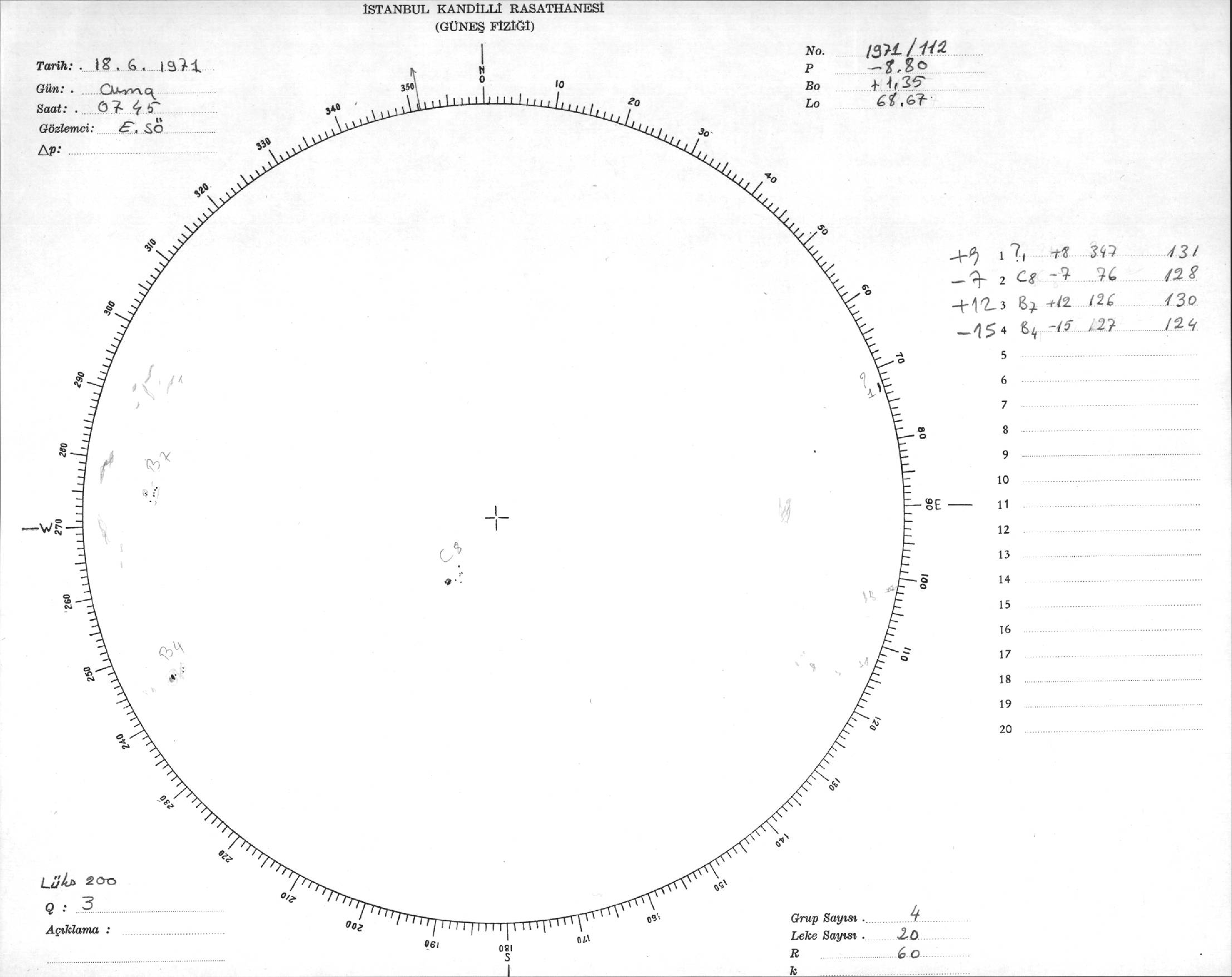 Güneş Lekesi Çizimi - 18.06.1971