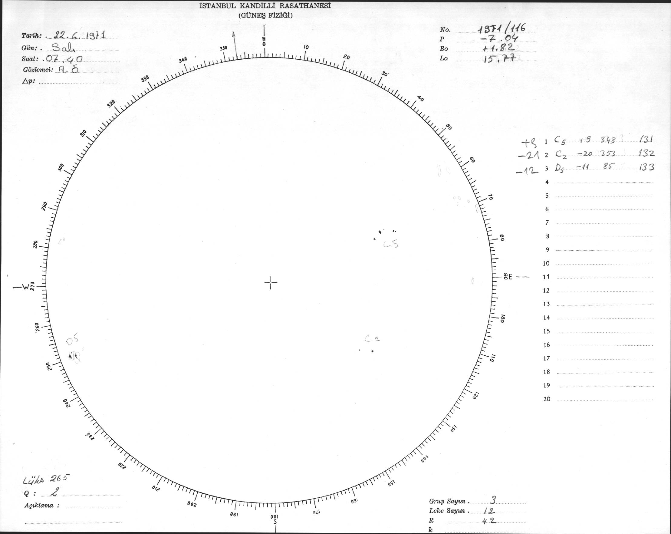 Güneş Lekesi Çizimi - 22.06.1971