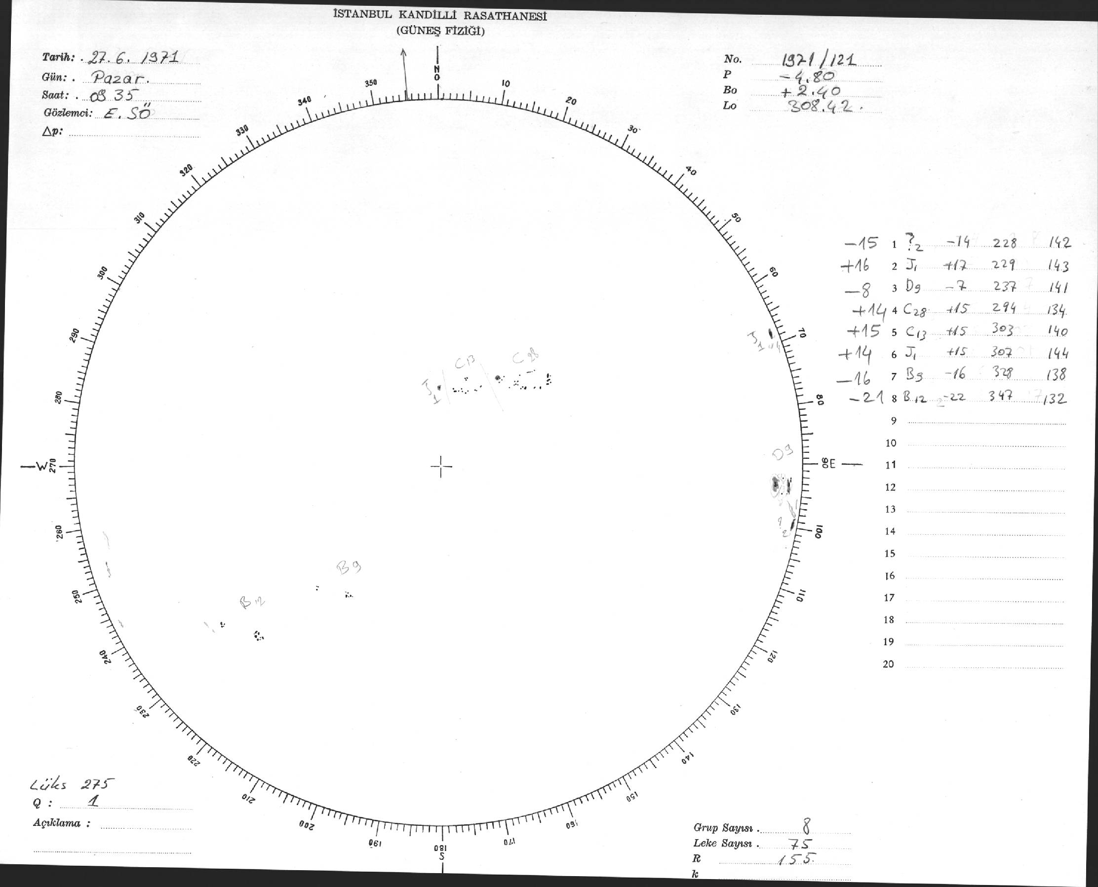 Güneş Lekesi Çizimi - 27.06.1971