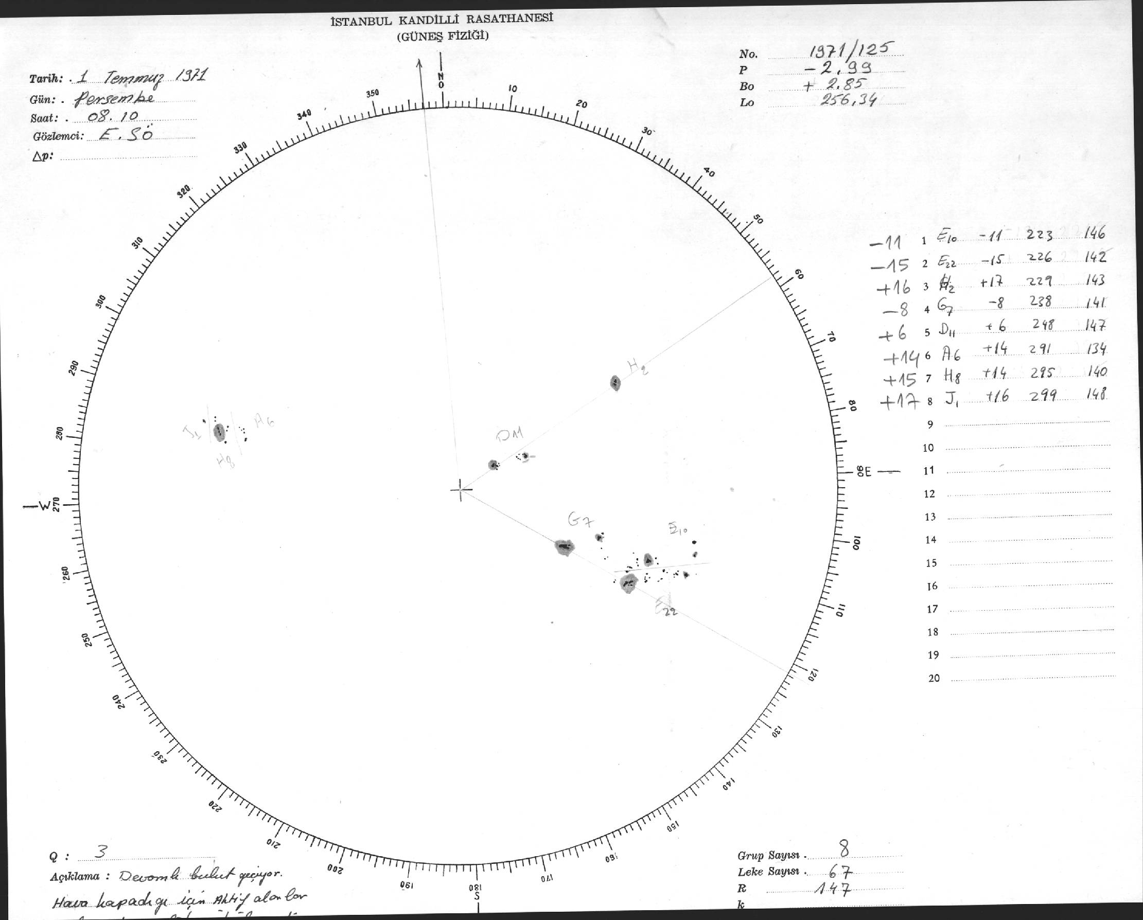 Güneş Lekesi Çizimi - 01.07.1971