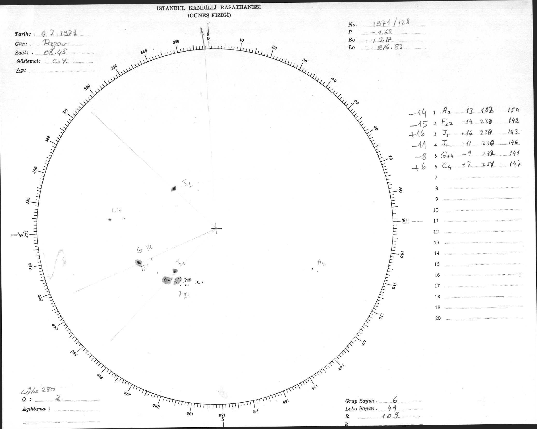 Güneş Lekesi Çizimi - 04.07.1971