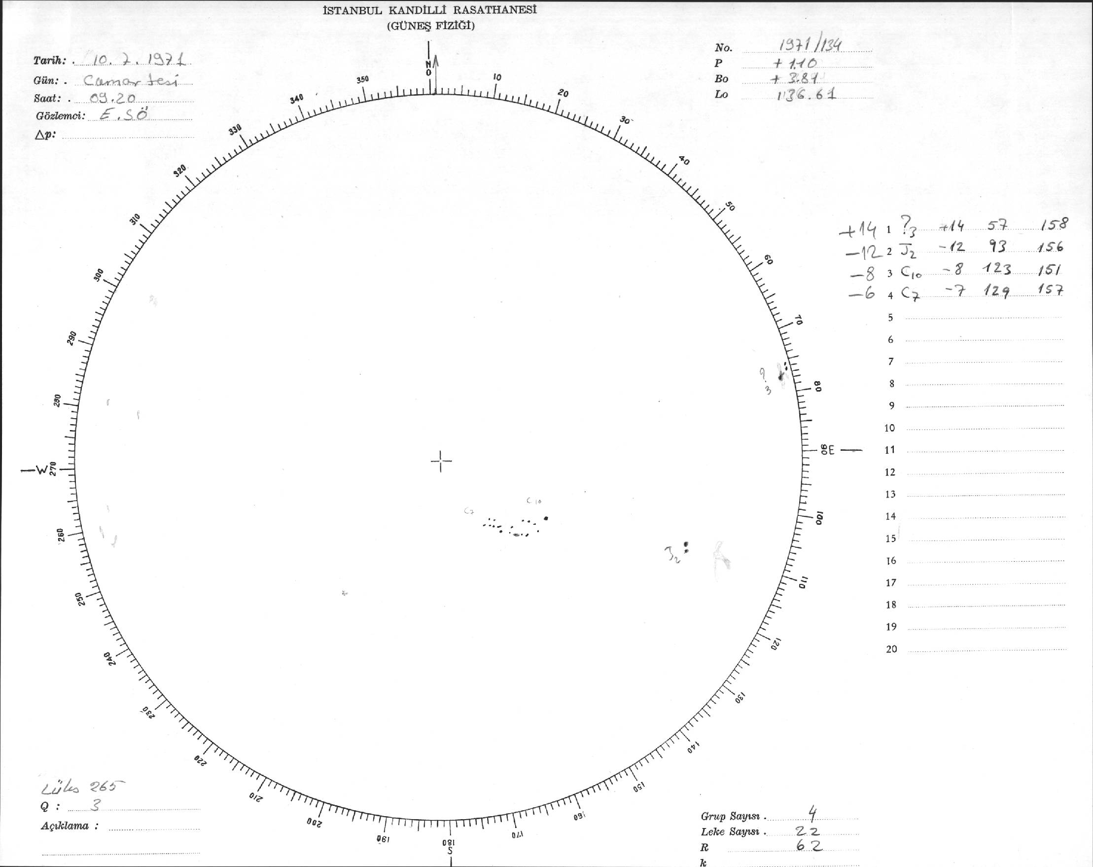 Güneş Lekesi Çizimi - 10.07.1971