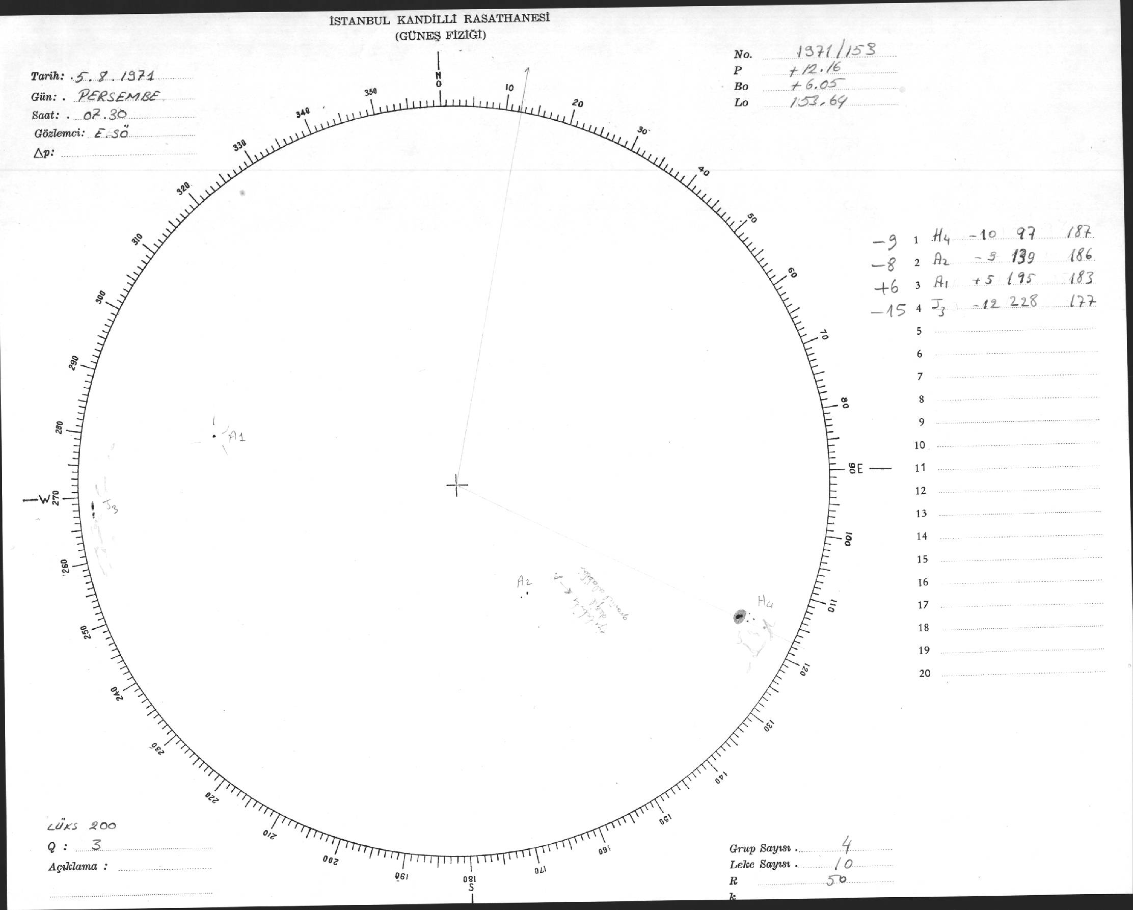 Güneş Lekesi Çizimi - 05.08.1971