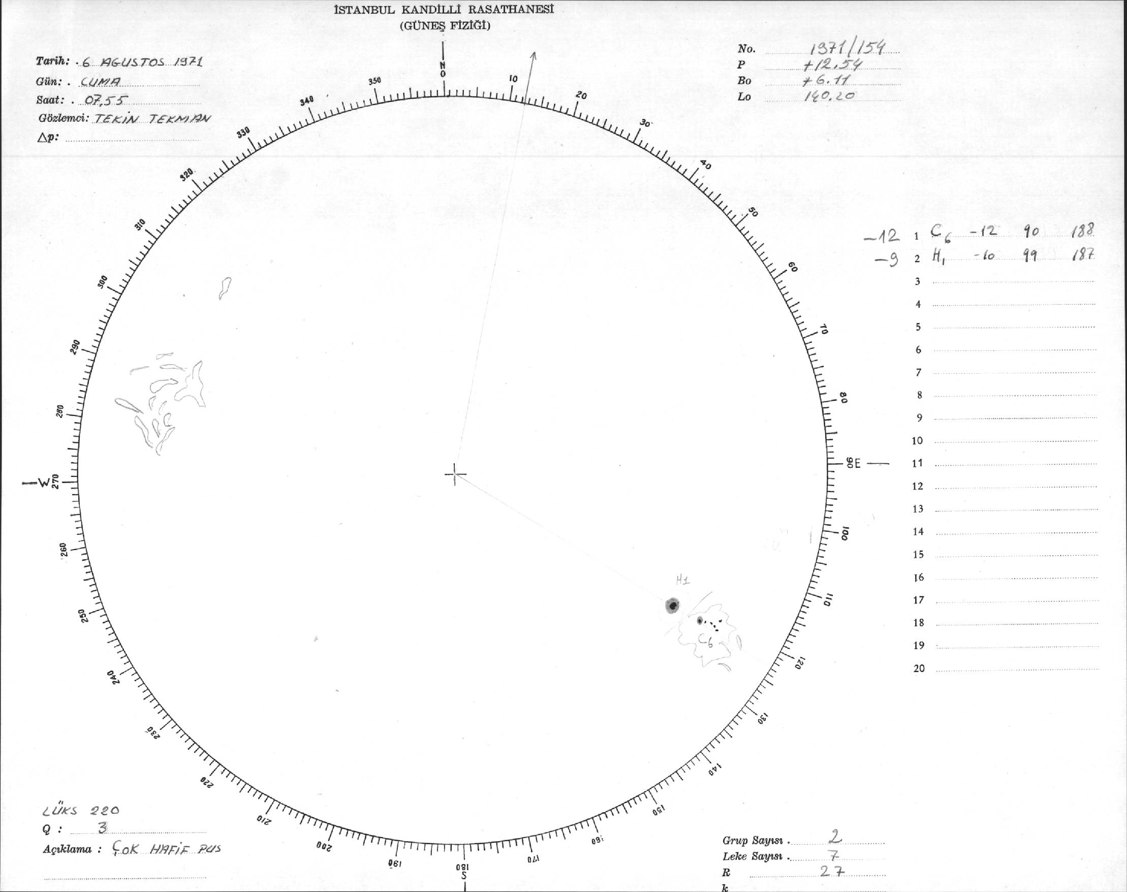 Güneş Lekesi Çizimi - 06.08.1971