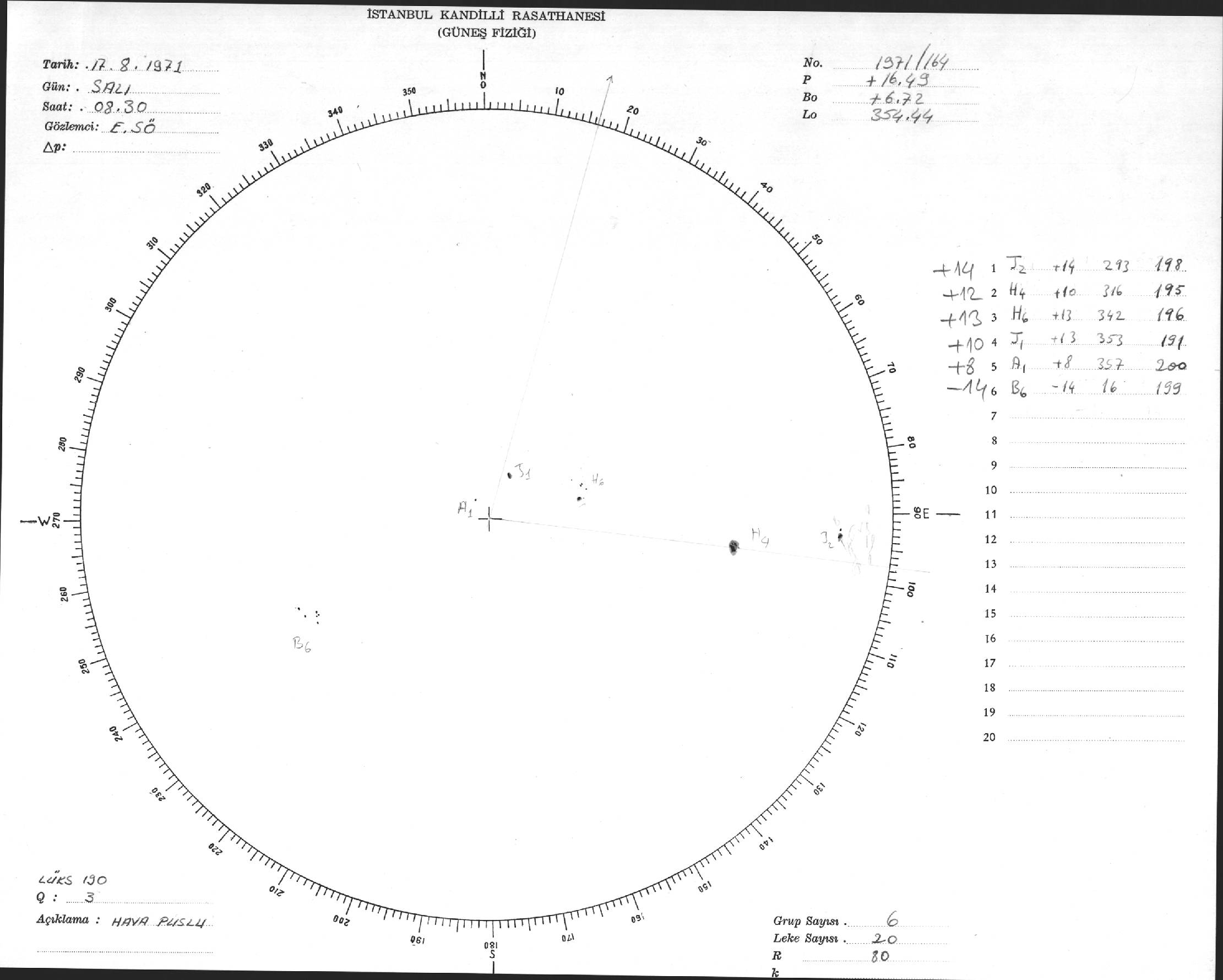 Güneş Lekesi Çizimi - 17.08.1971