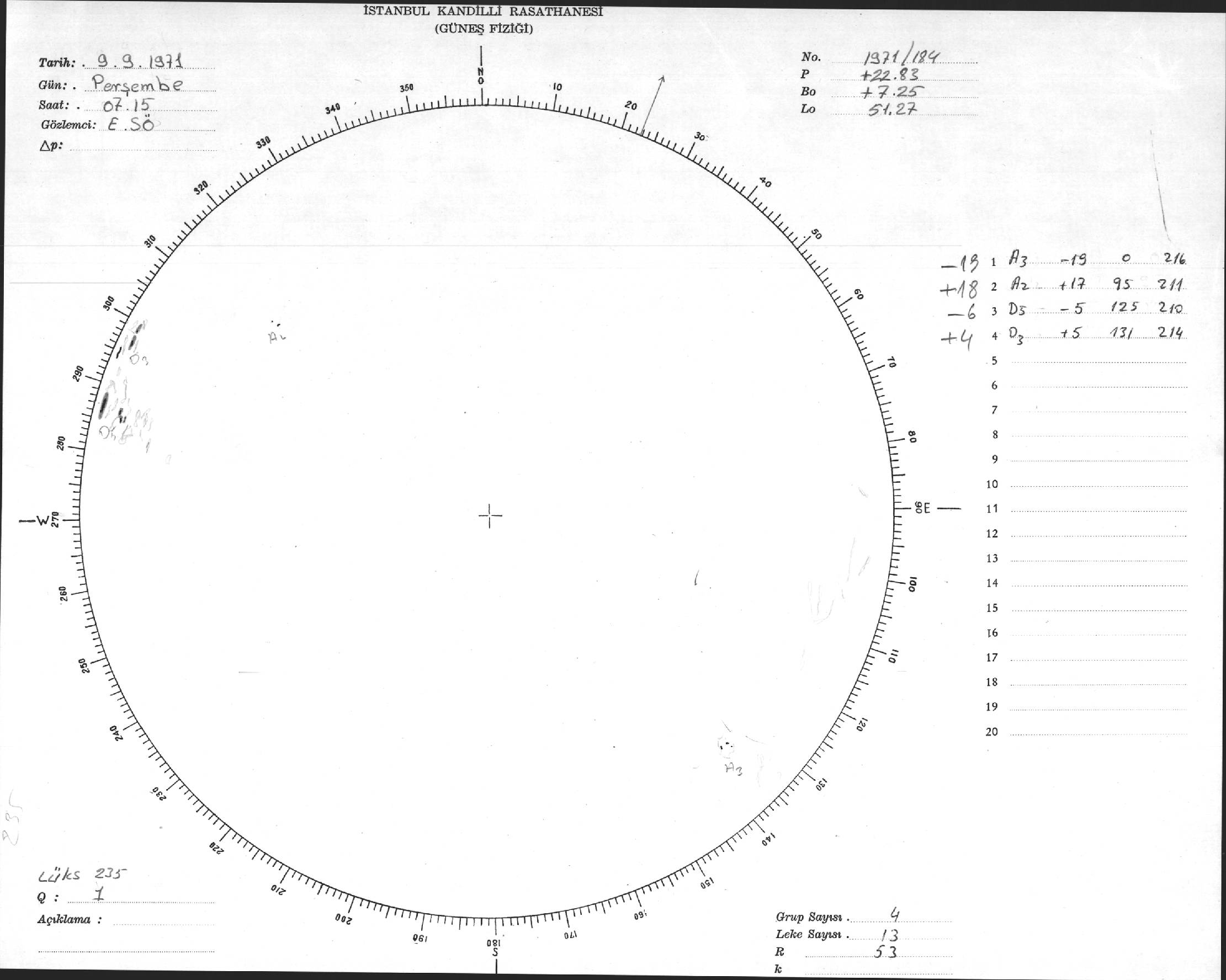 Güneş Lekesi Çizimi - 09.09.1971