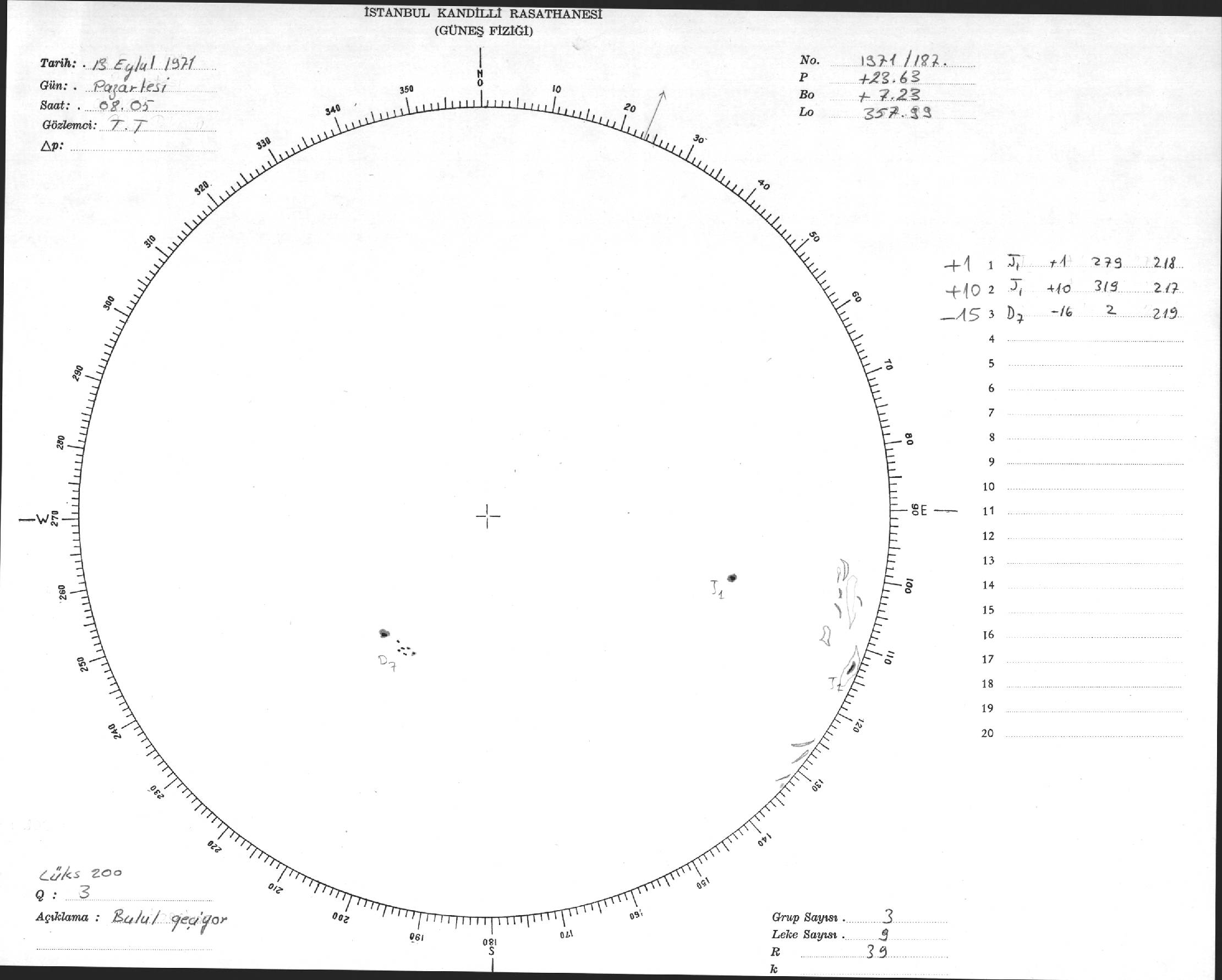 Güneş Lekesi Çizimi - 13.09.1971