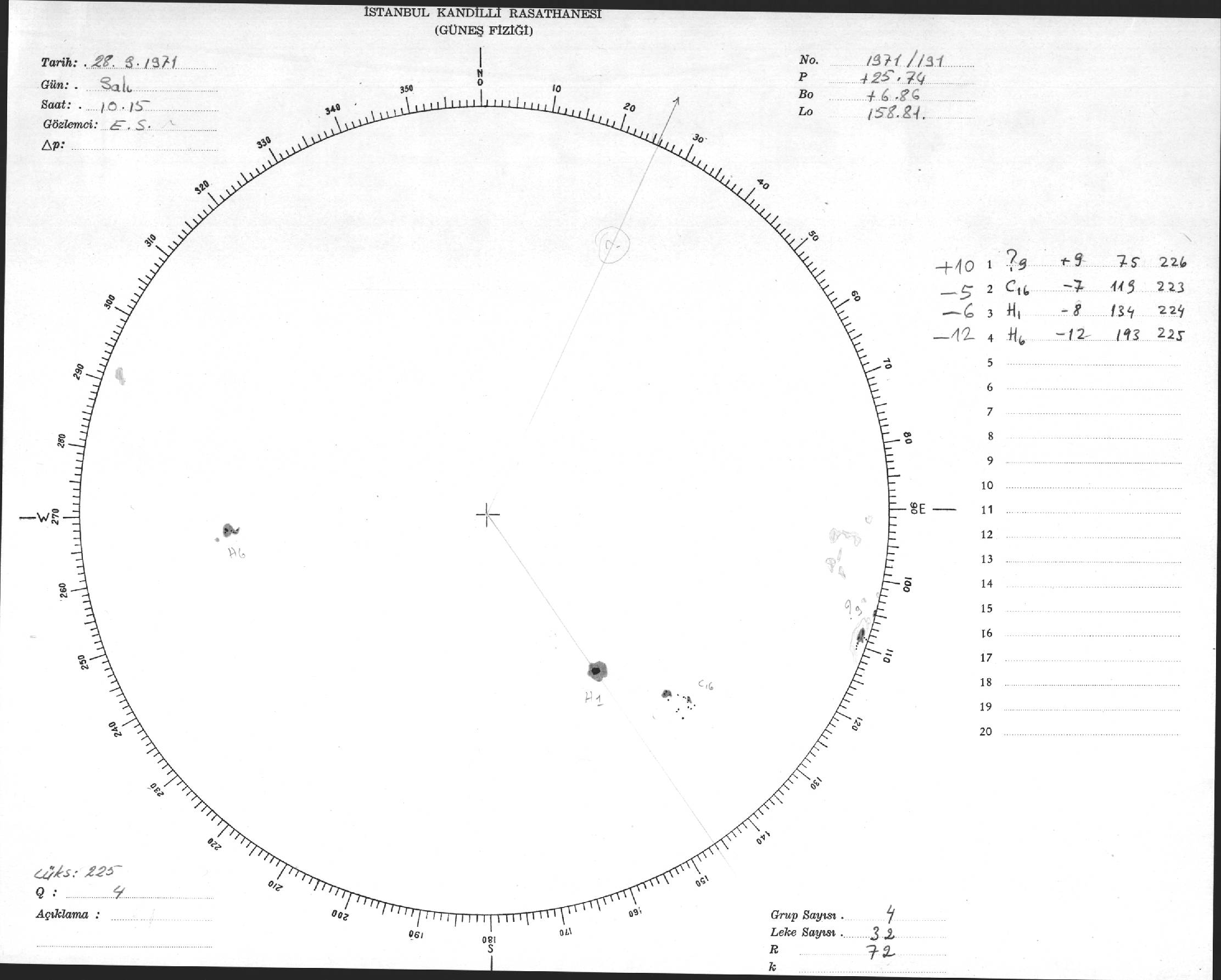 Güneş Lekesi Çizimi - 28.09.1971