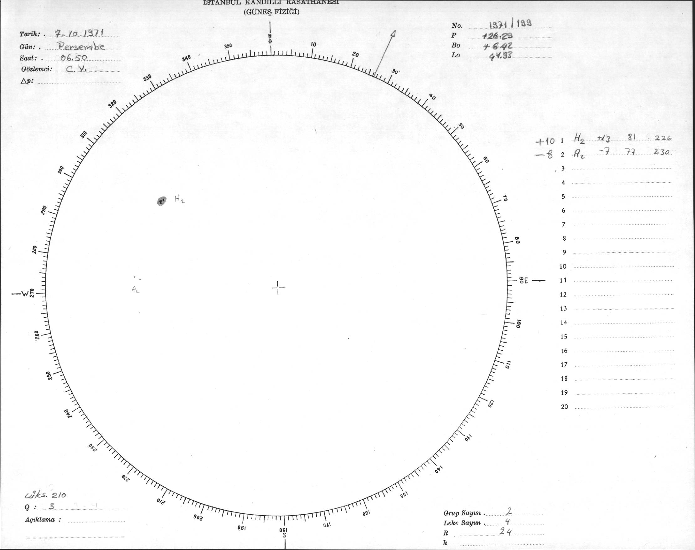 Güneş Lekesi Çizimi - 07.10.1971