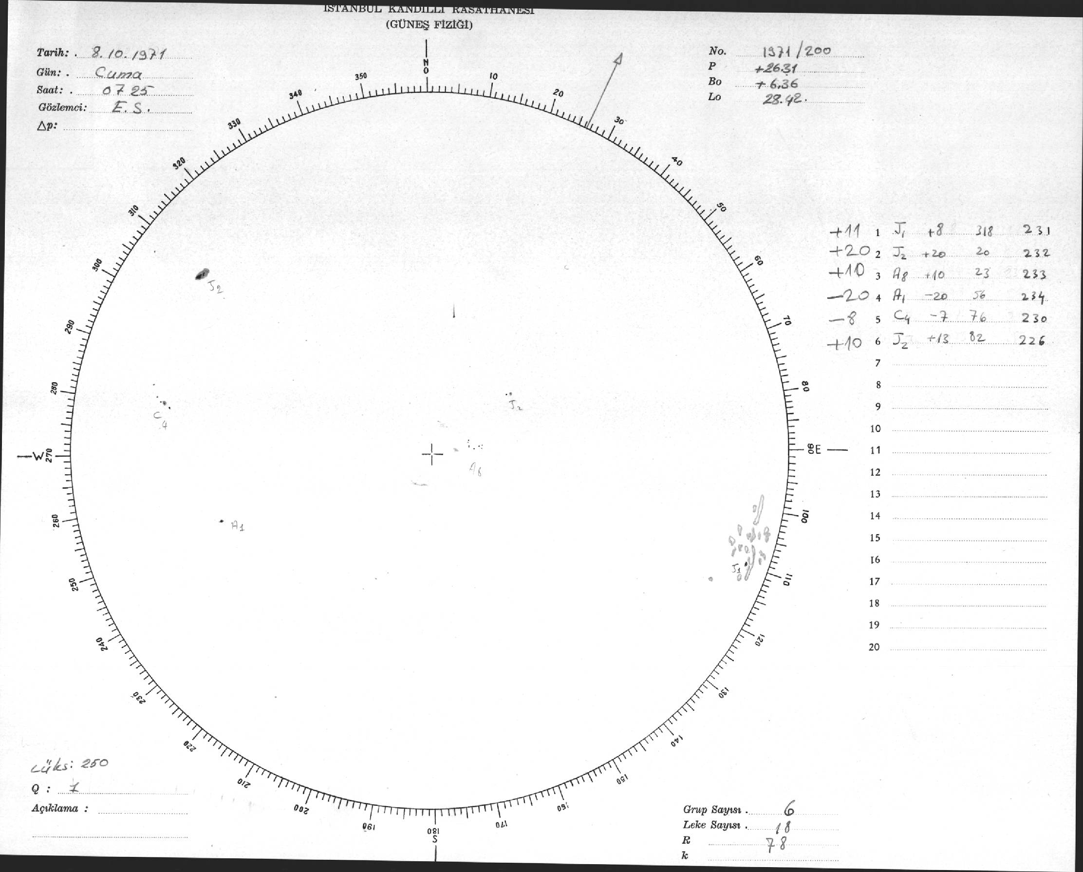 Güneş Lekesi Çizimi - 08.10.1971