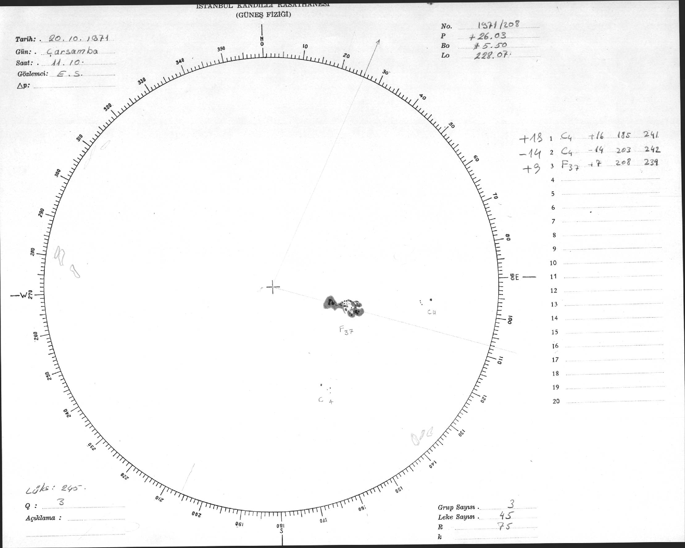 Güneş Lekesi Çizimi - 20.10.1971