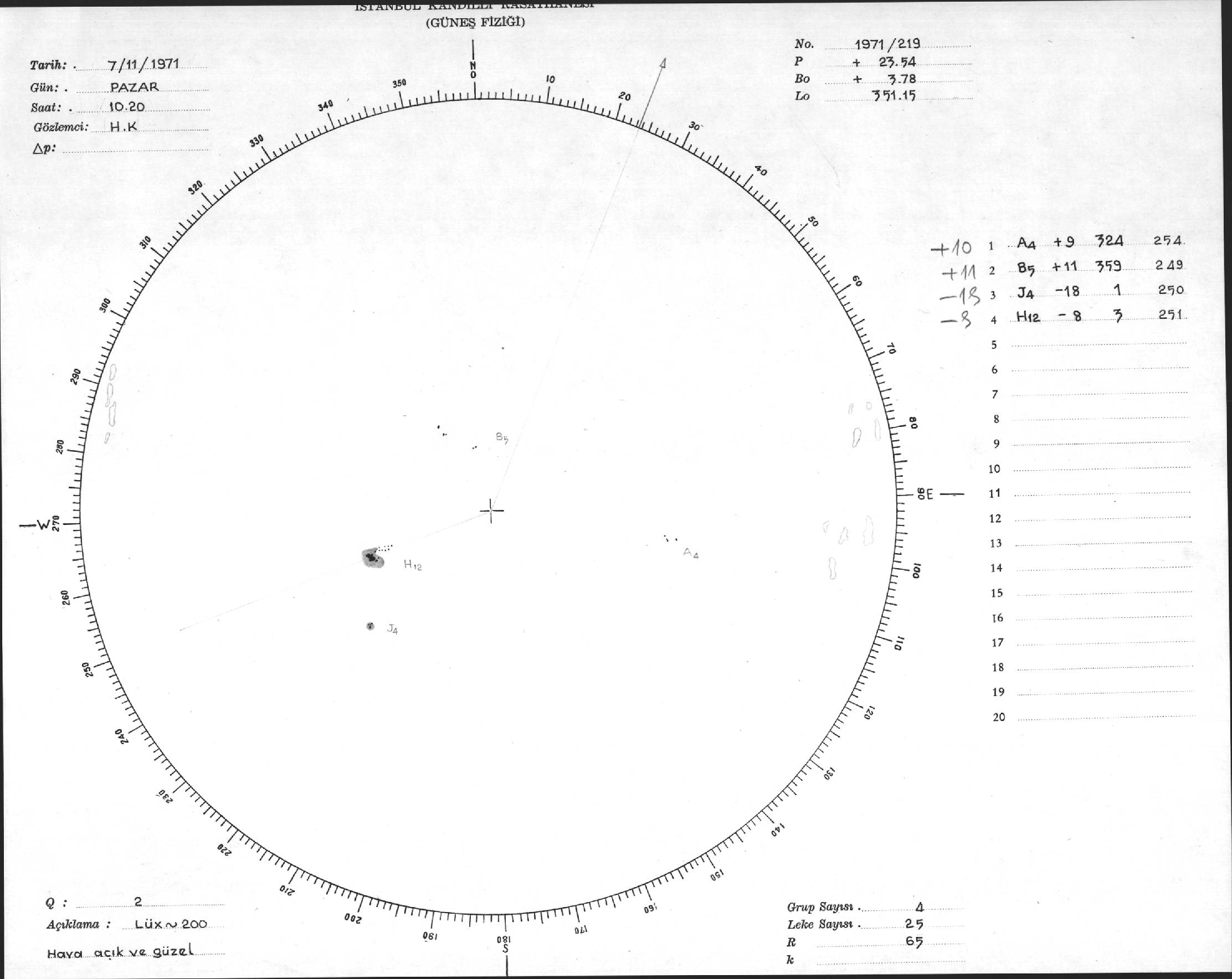 Güneş Lekesi Çizimi - 07.11.1971