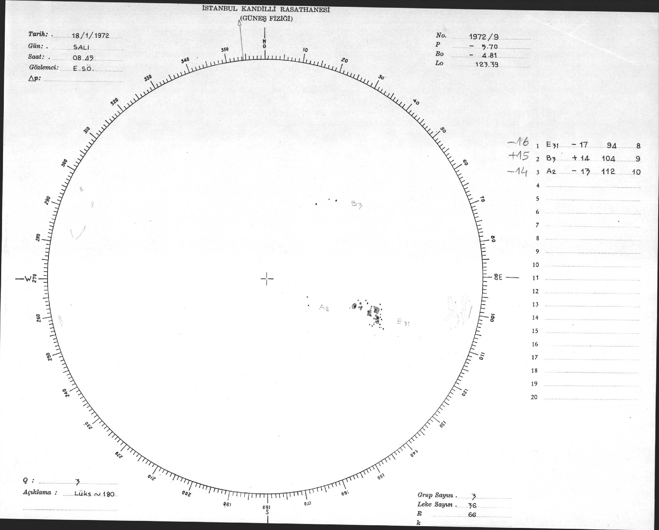Güneş Lekesi Çizimi - 18.01.1972