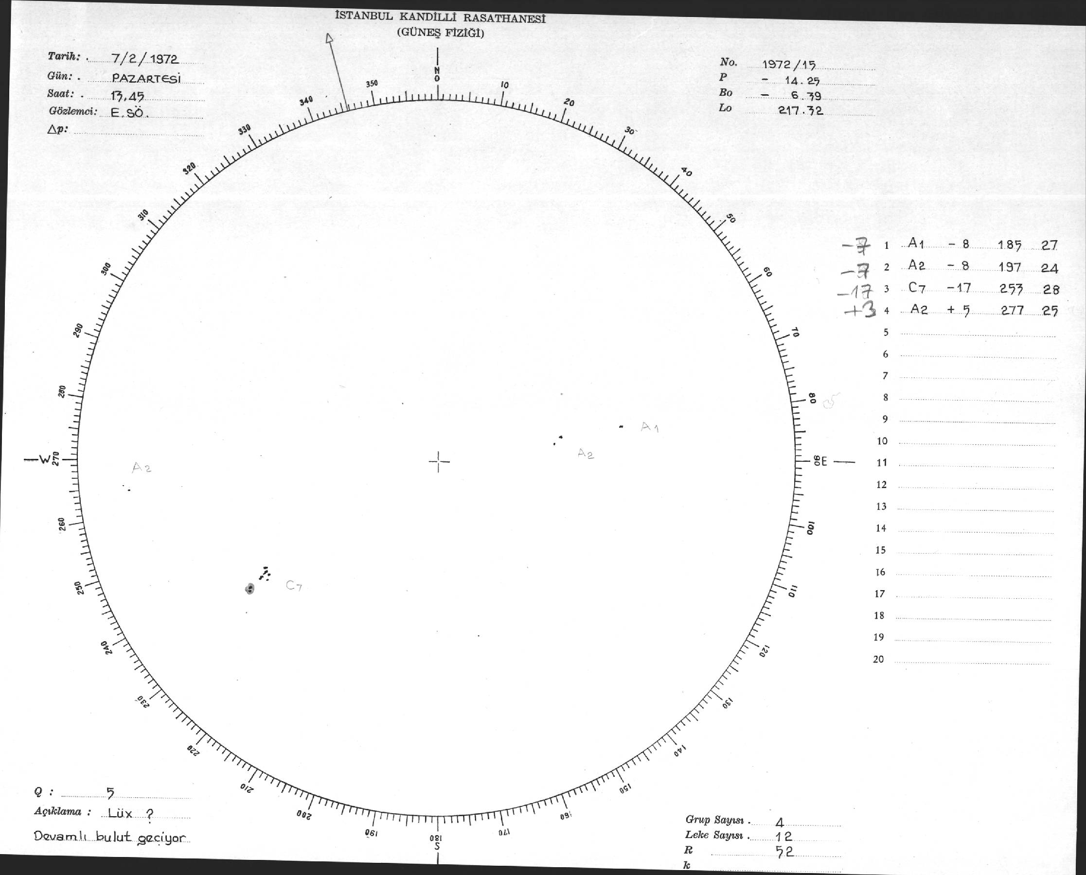 Güneş Lekesi Çizimi - 07.02.1972