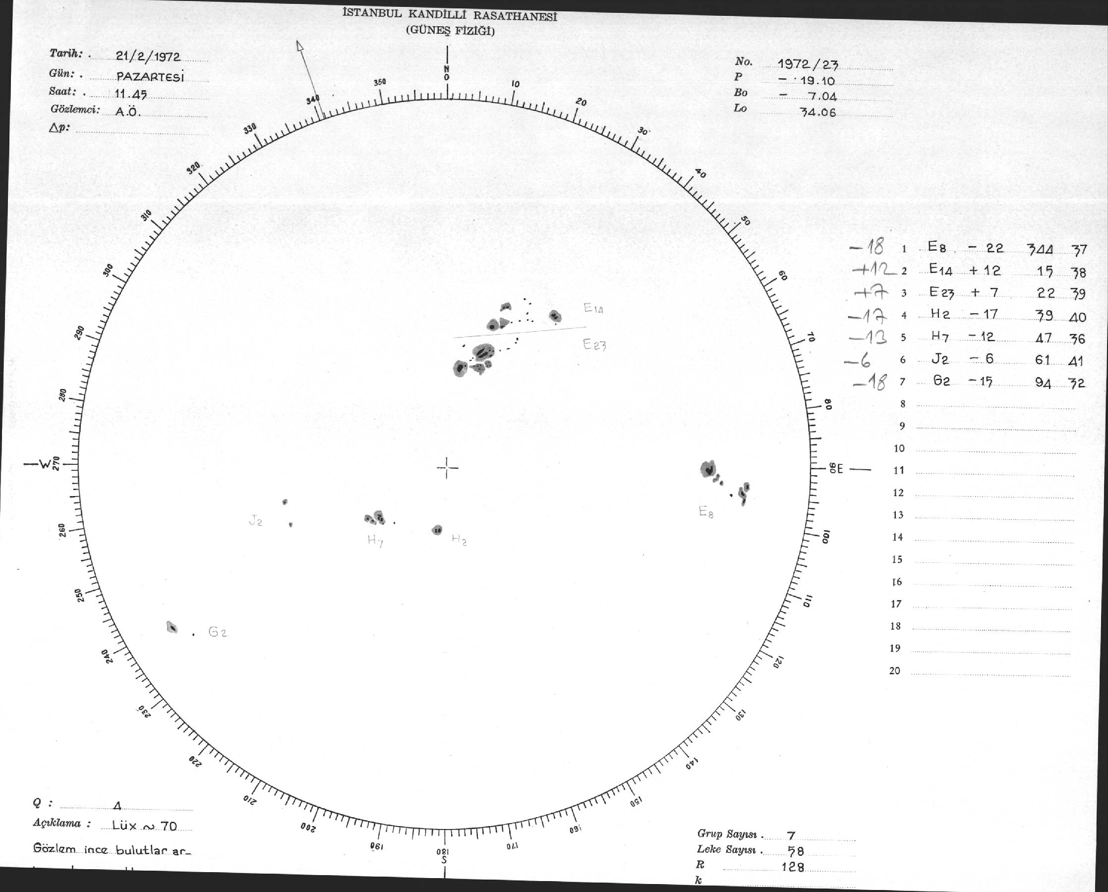 Güneş Lekesi Çizimi - 21.02.1972