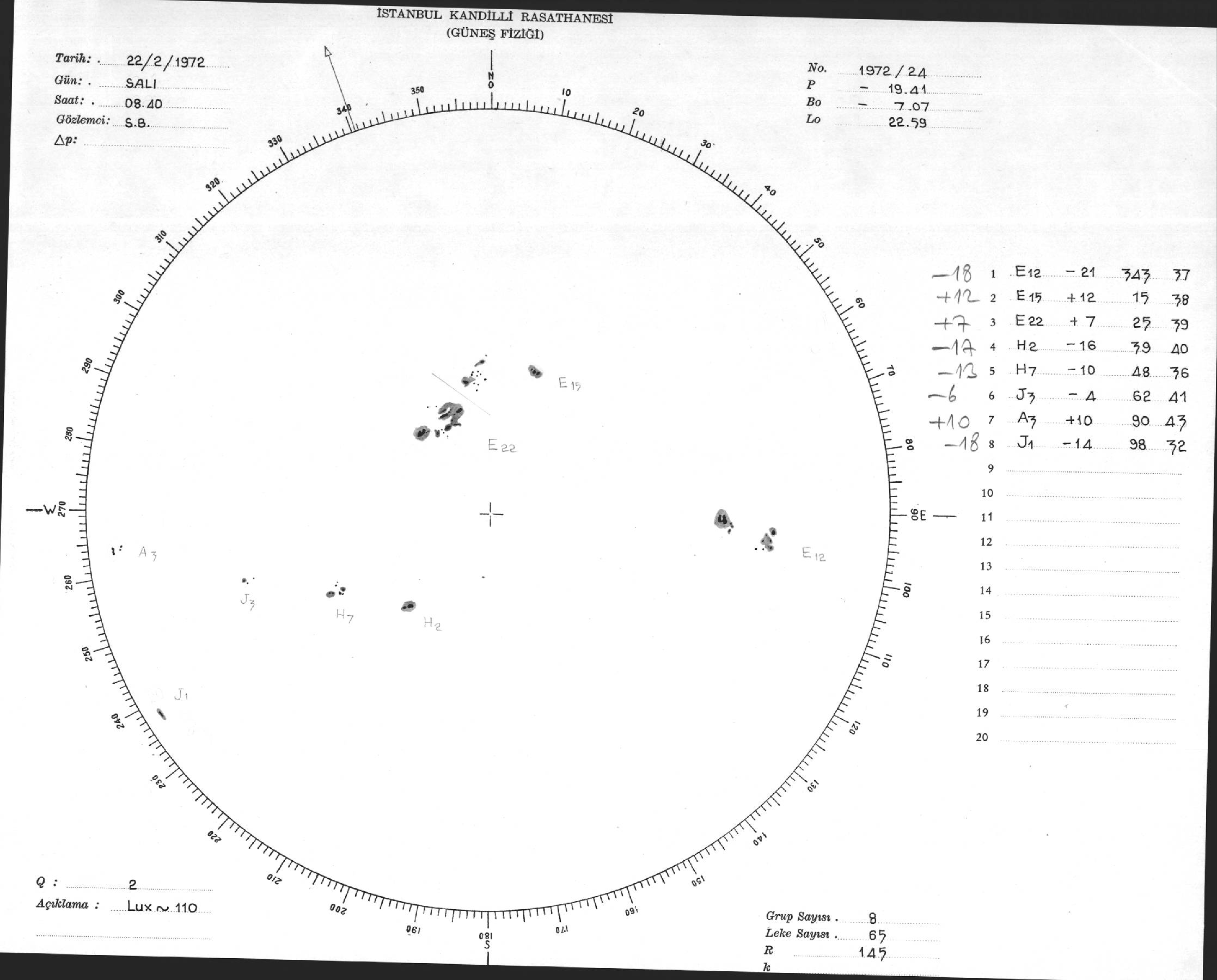 Güneş Lekesi Çizimi - 22.02.1972