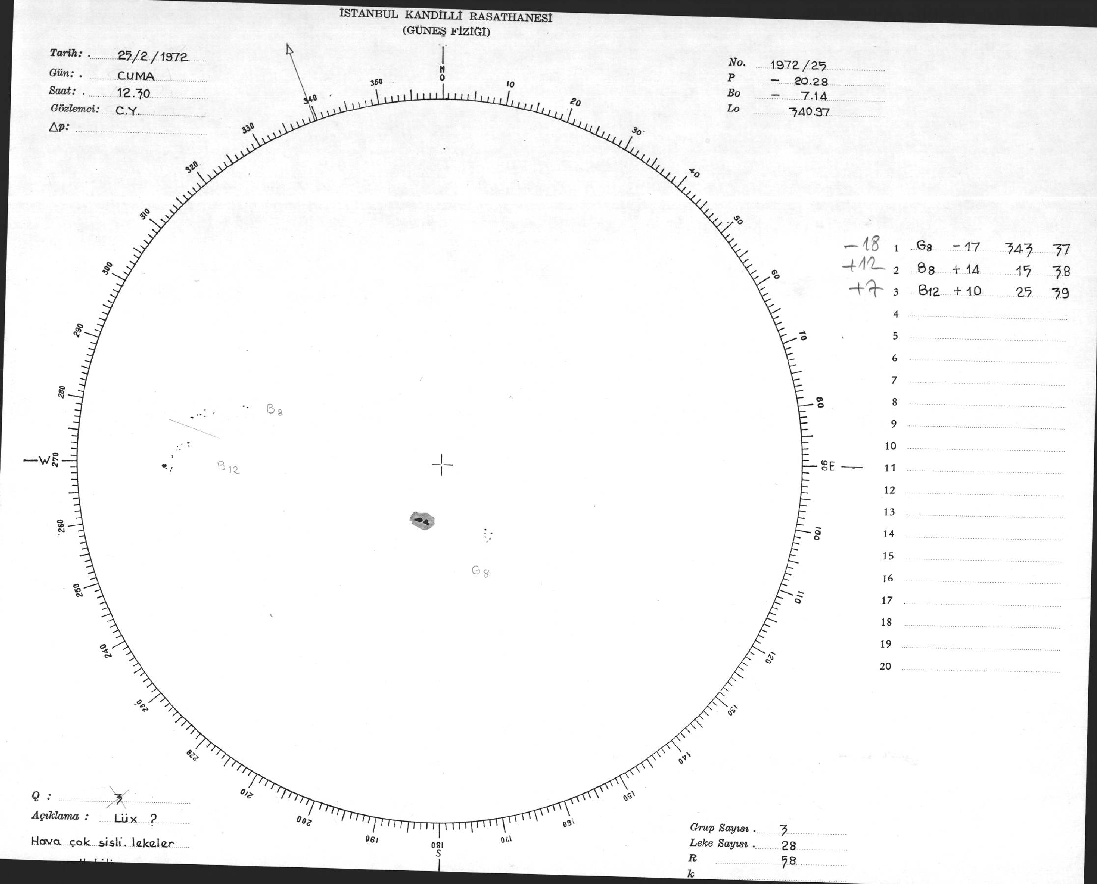 Güneş Lekesi Çizimi - 25.02.1972