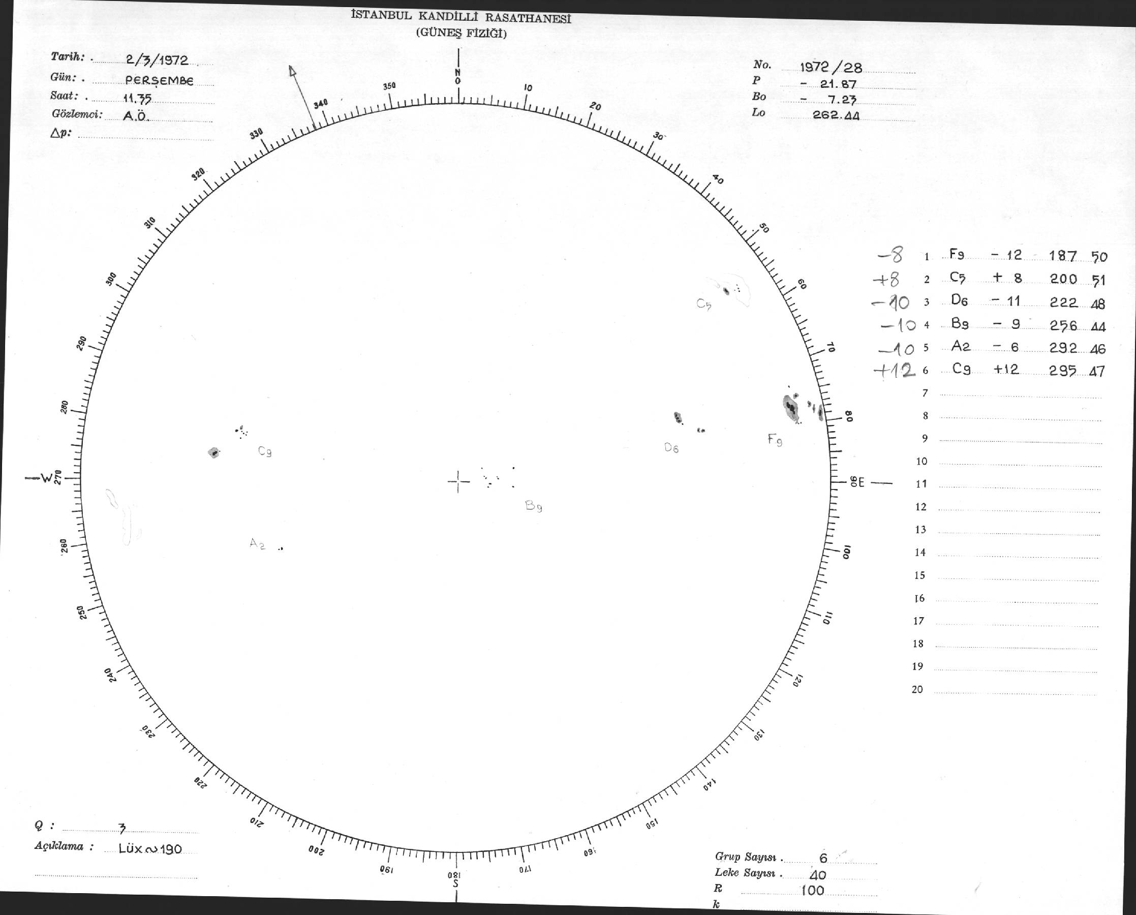 Güneş Lekesi Çizimi - 02.03.1972