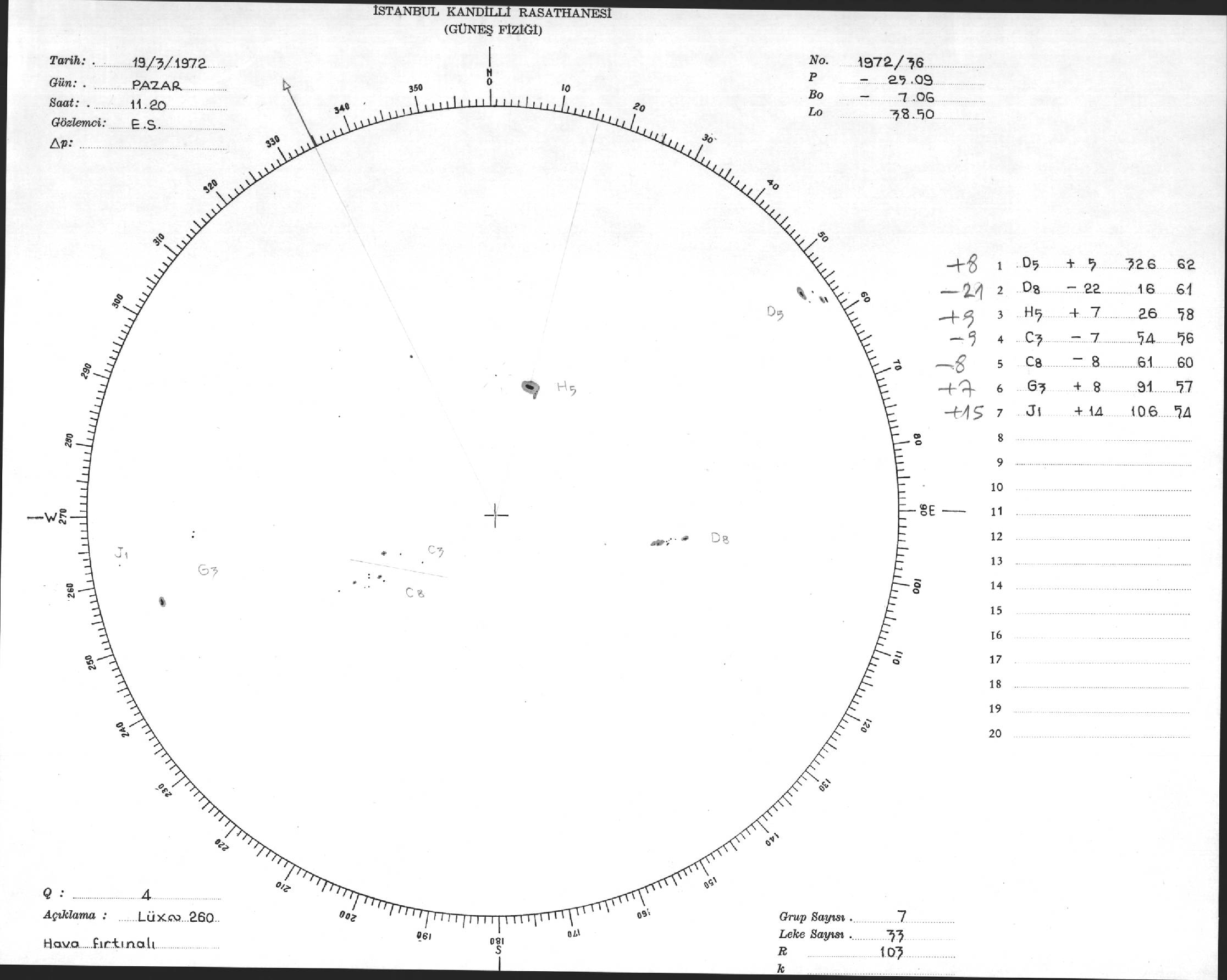 Güneş Lekesi Çizimi - 19.03.1972