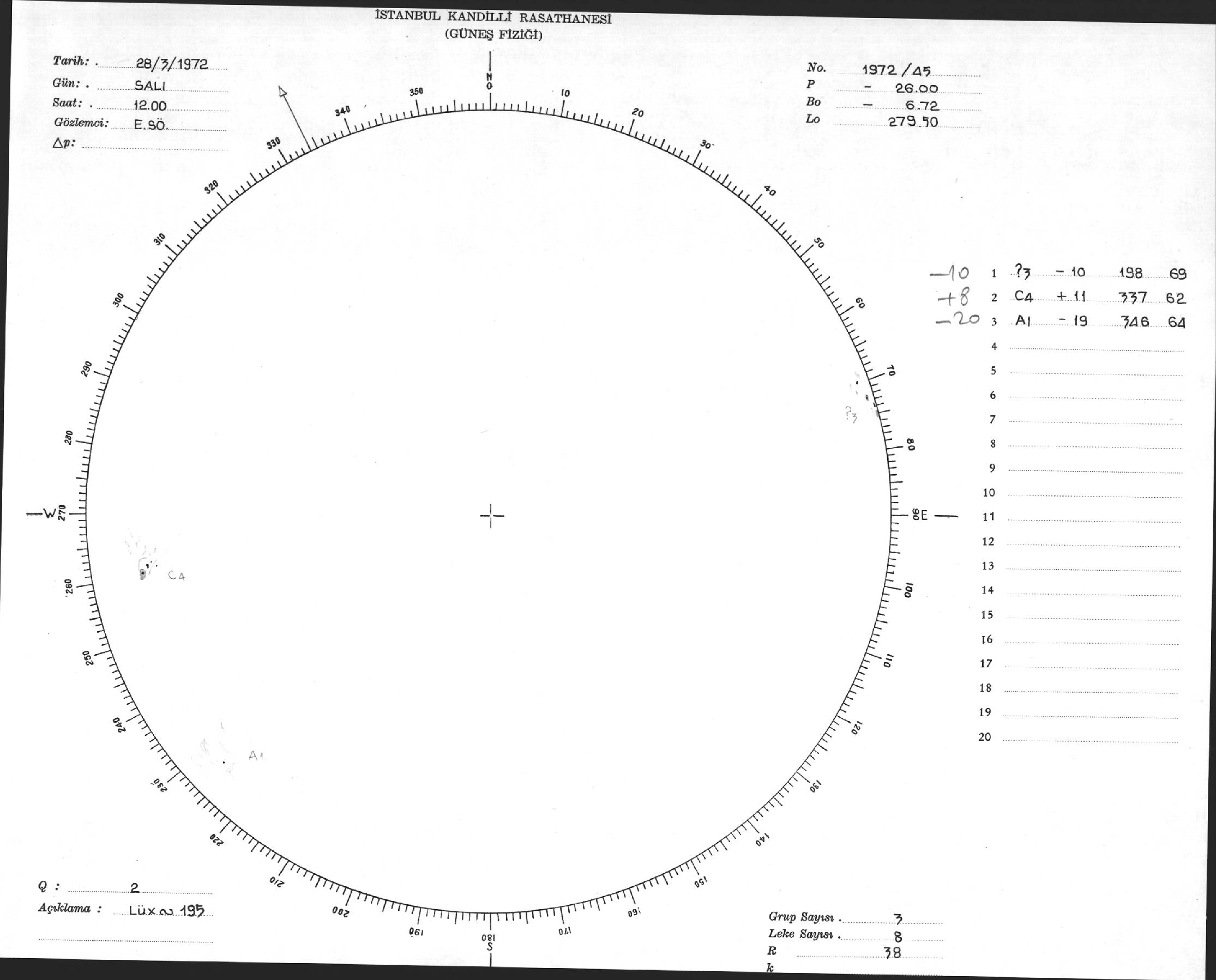 Güneş Lekesi Çizimi - 28.03.1972