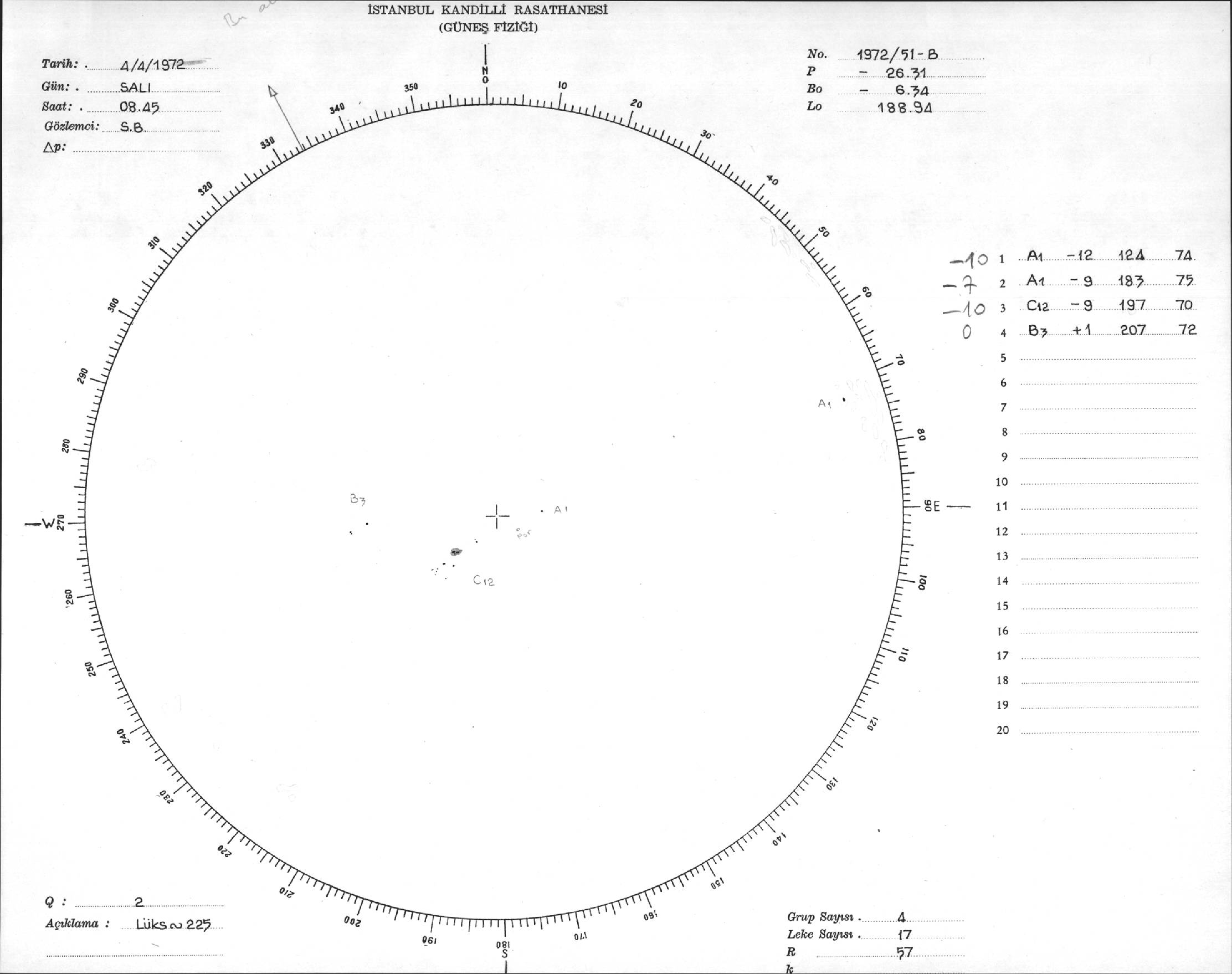 Güneş Lekesi Çizimi - 04.04.1972