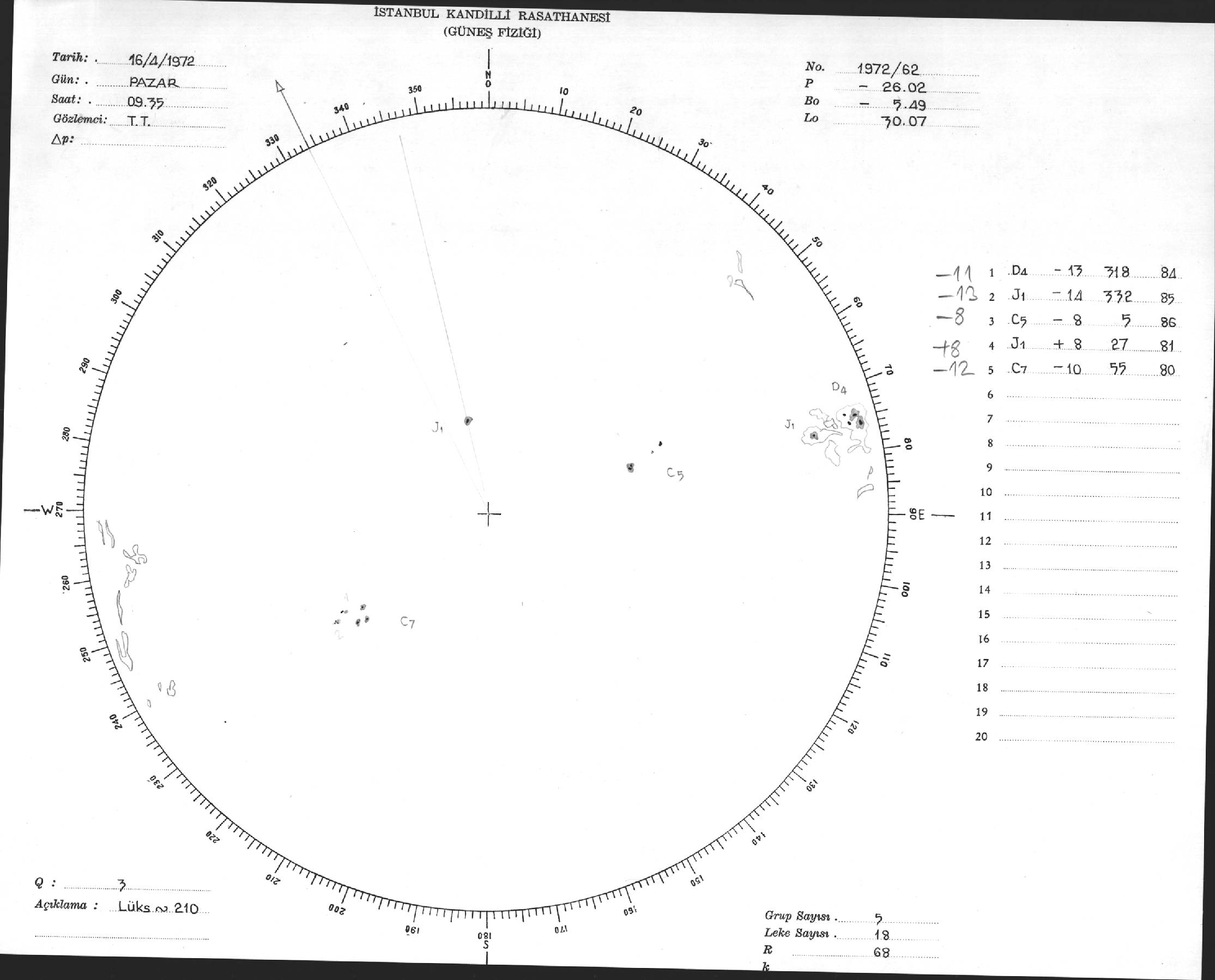 Güneş Lekesi Çizimi - 16.04.1972