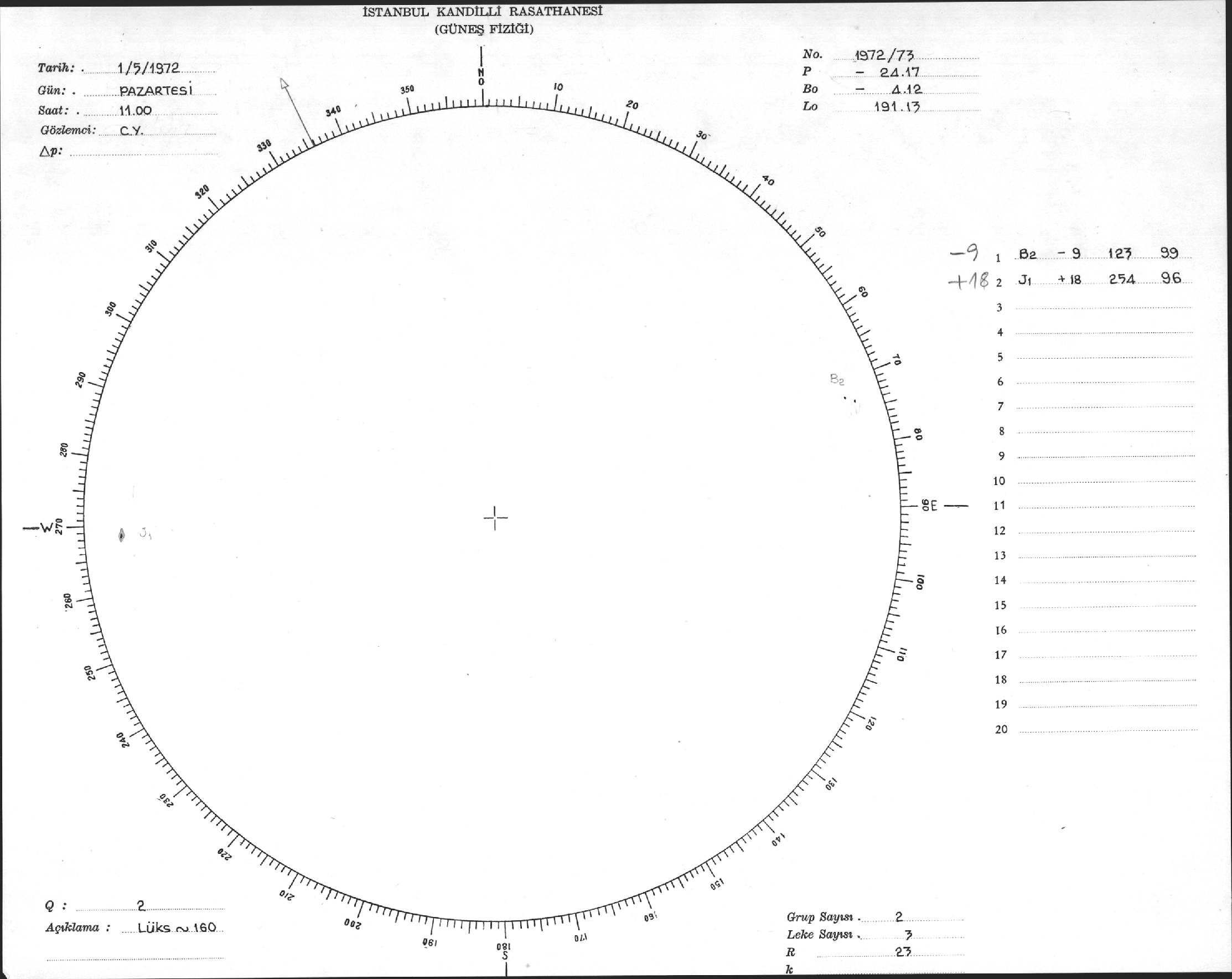 Güneş Lekesi Çizimi - 01.05.1972