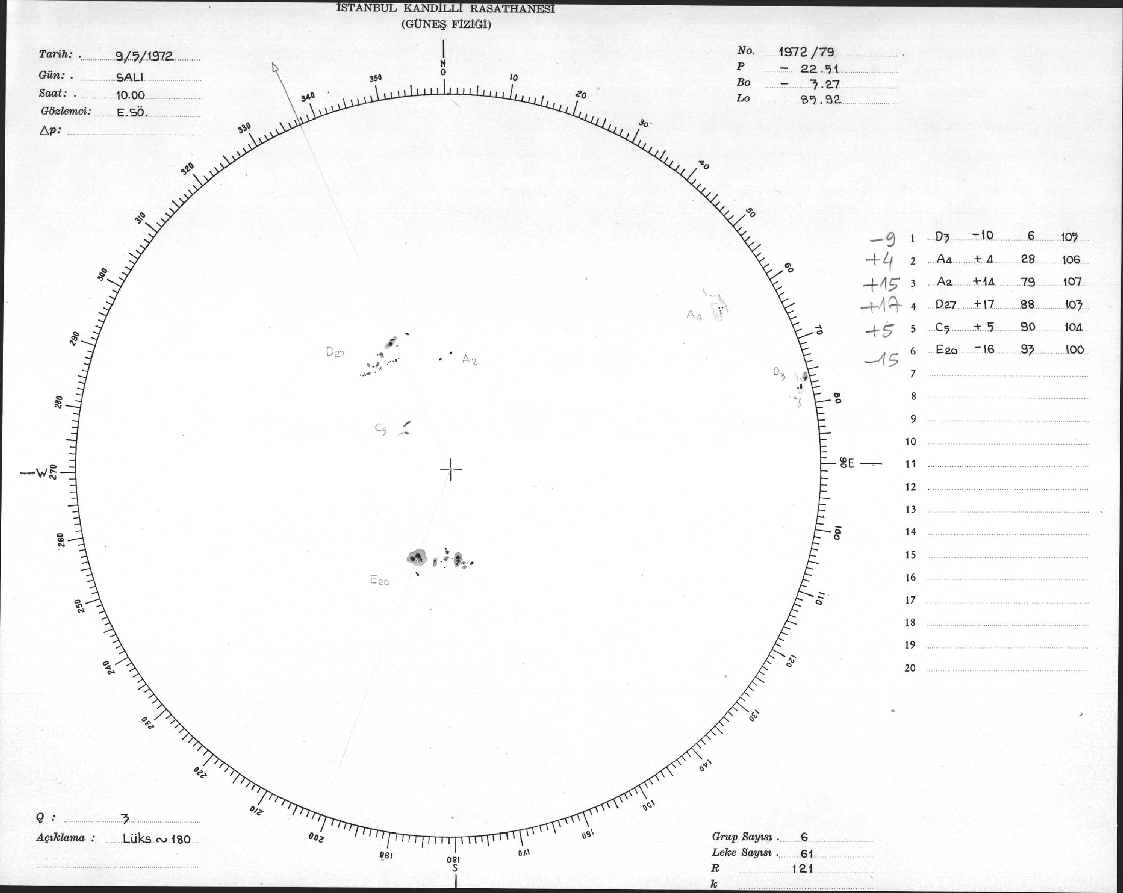 Güneş Lekesi Çizimi - 09.05.1972