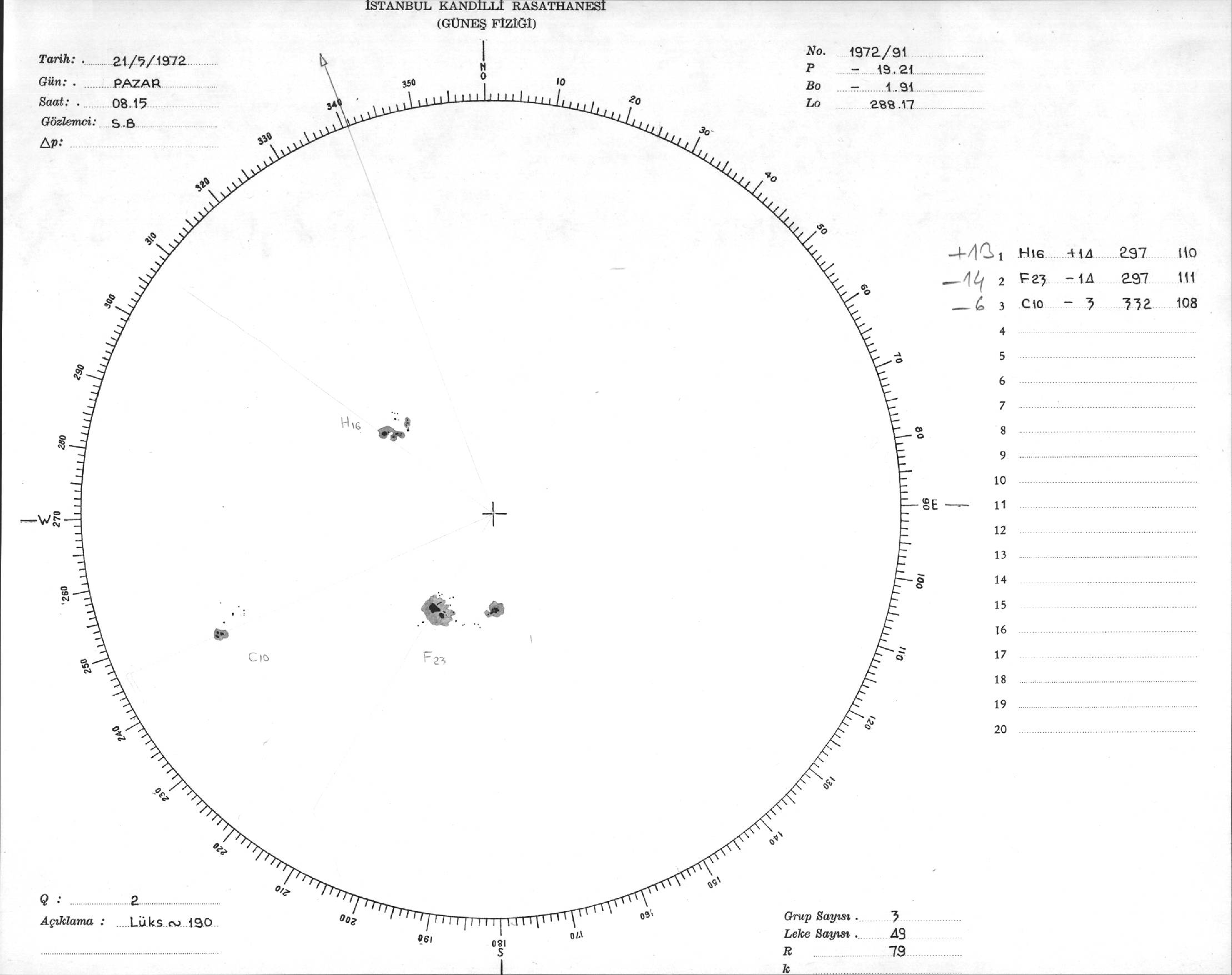 Güneş Lekesi Çizimi - 21.05.1972