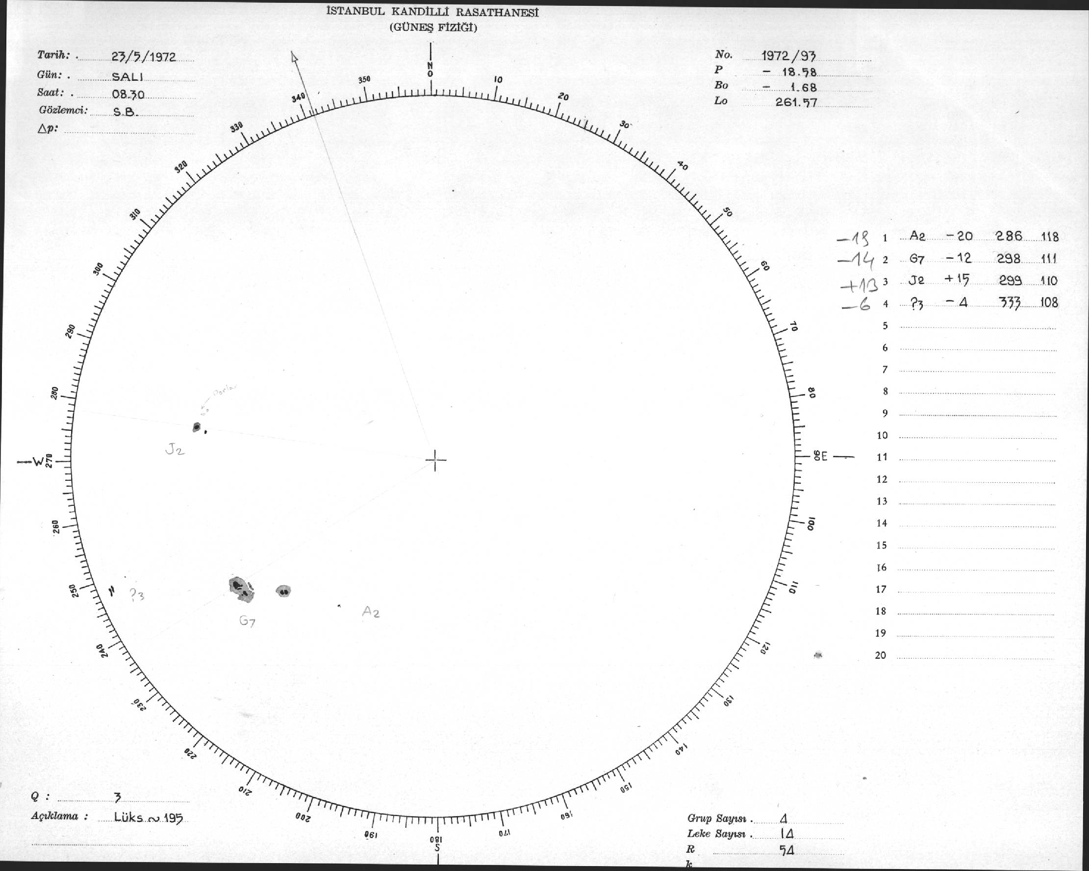 Güneş Lekesi Çizimi - 23.05.1972