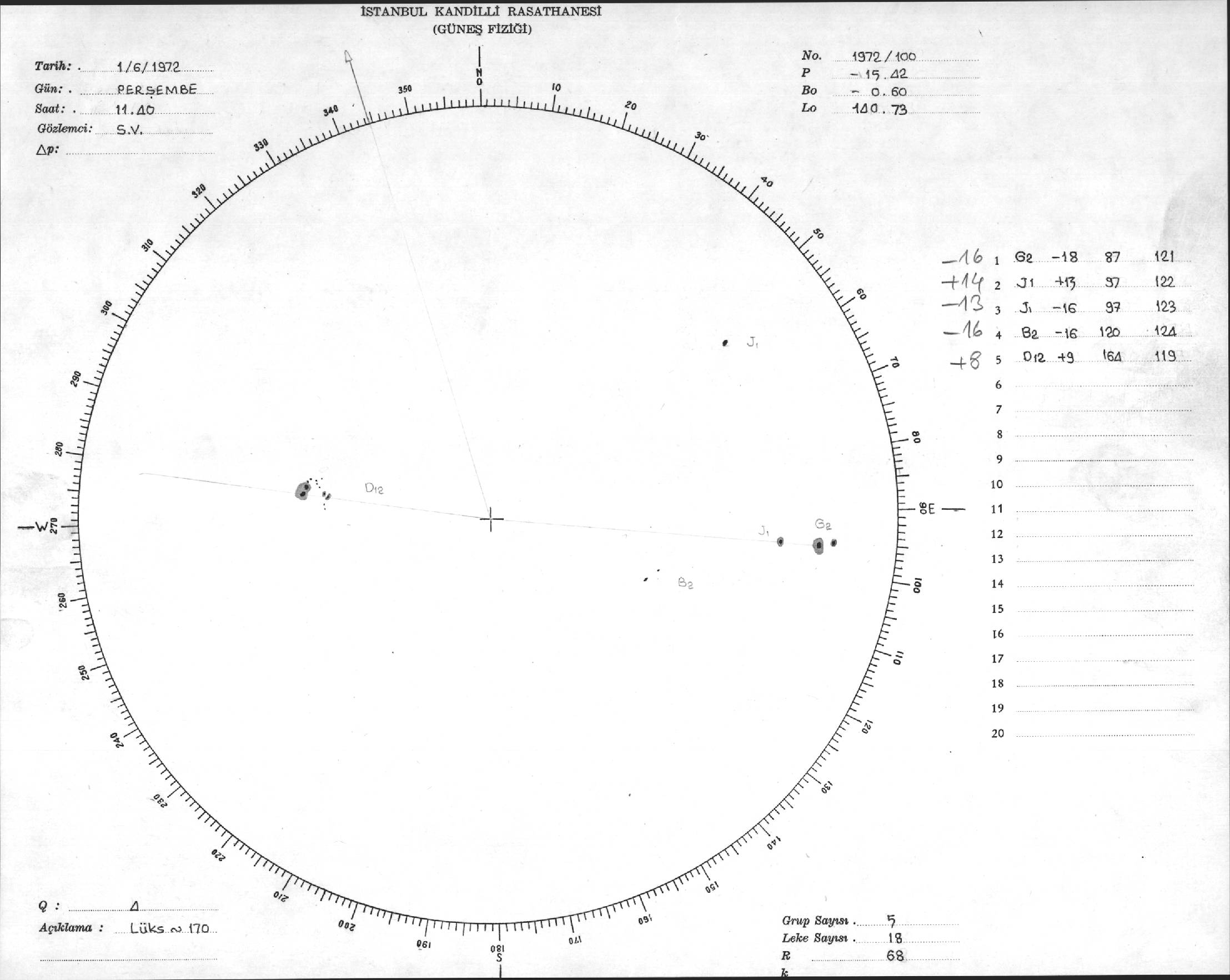 Güneş Lekesi Çizimi - 01.06.1972