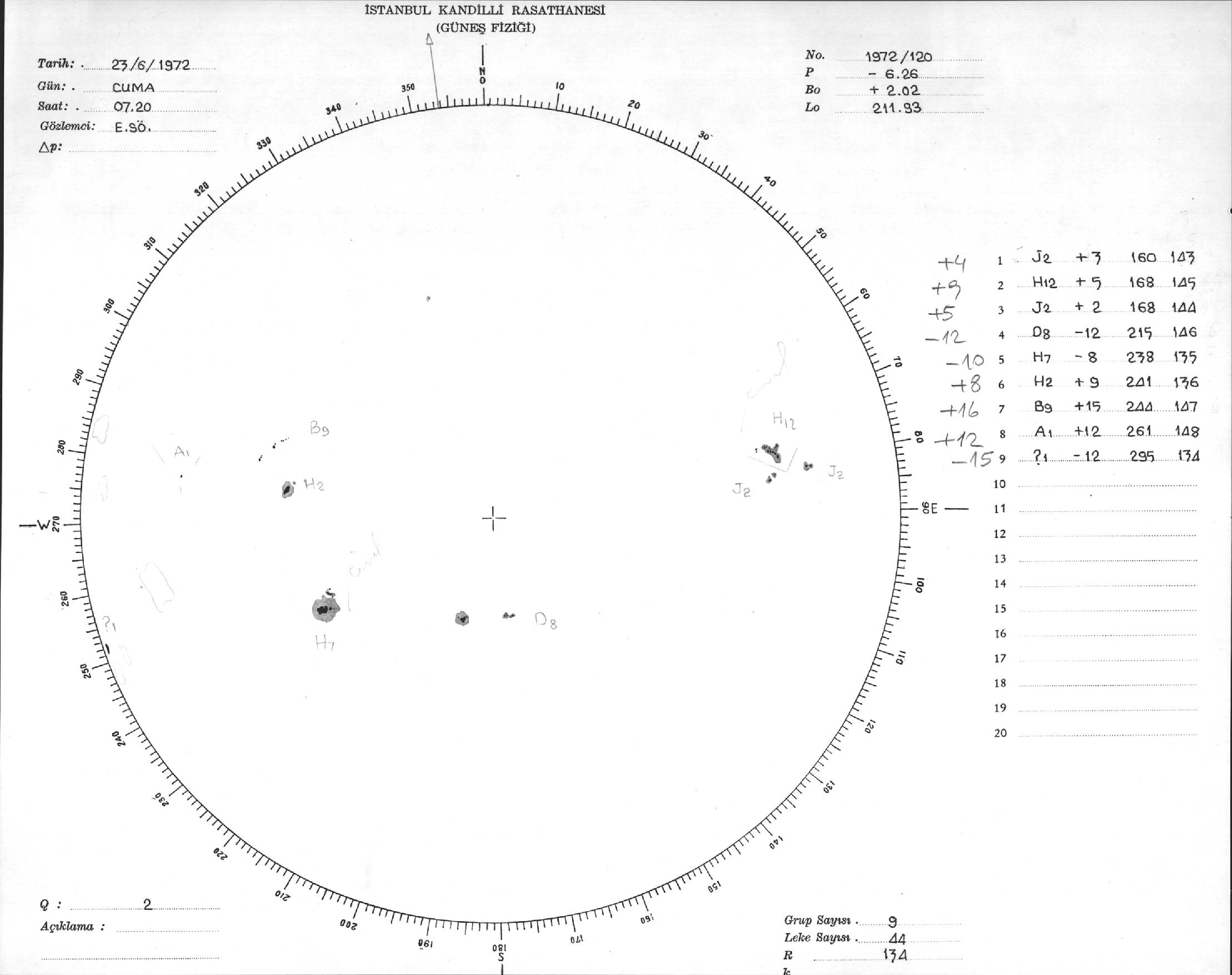 Güneş Lekesi Çizimi - 23.06.1972