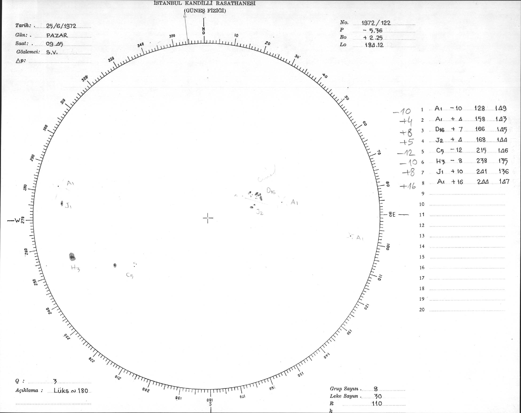 Güneş Lekesi Çizimi - 25.06.1972