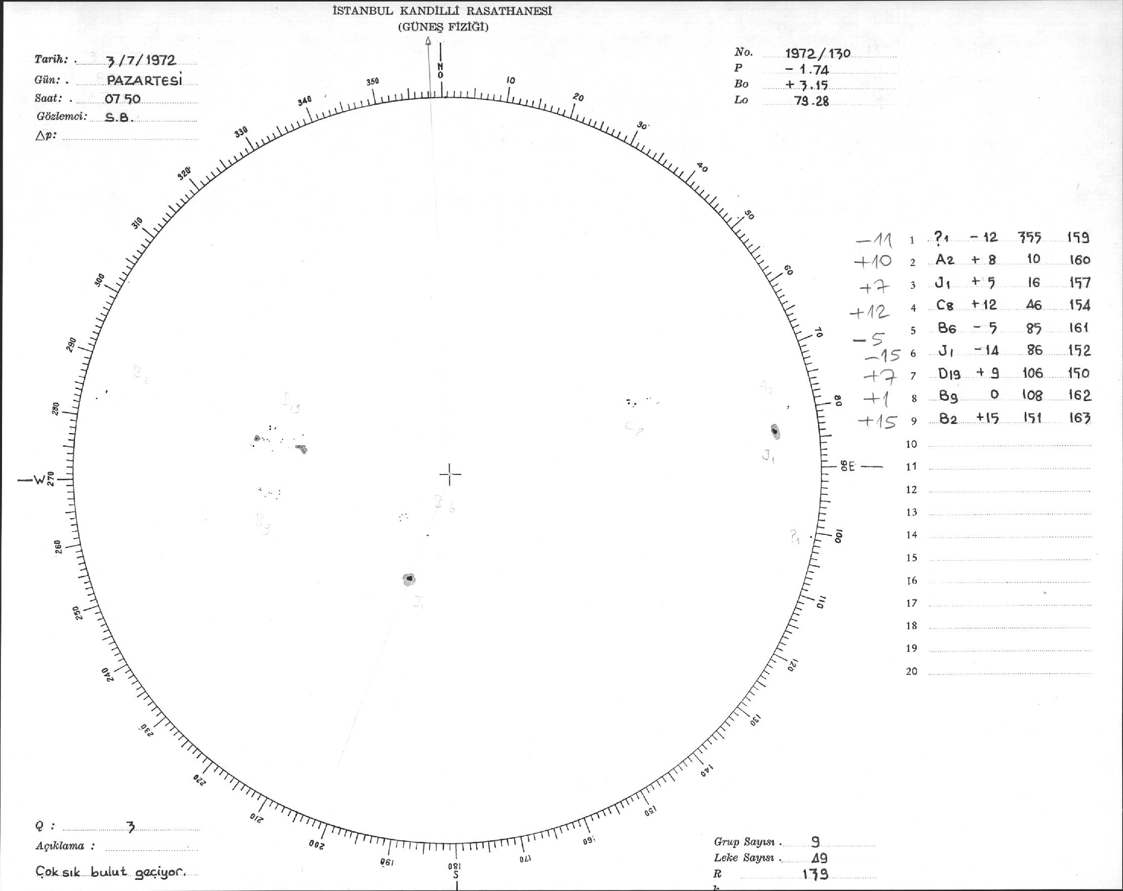 Güneş Lekesi Çizimi - 03.07.1972