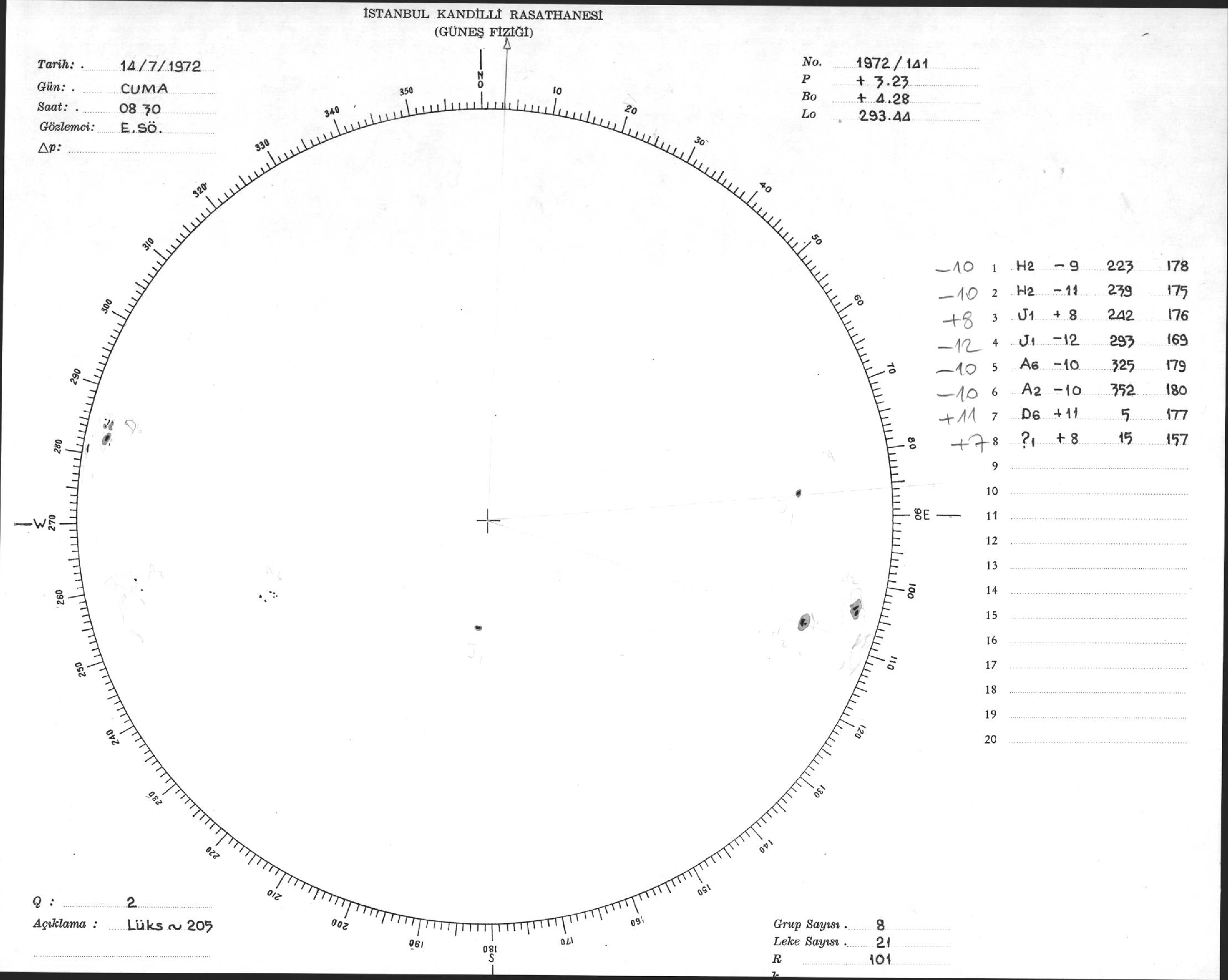 Güneş Lekesi Çizimi - 14.07.1972