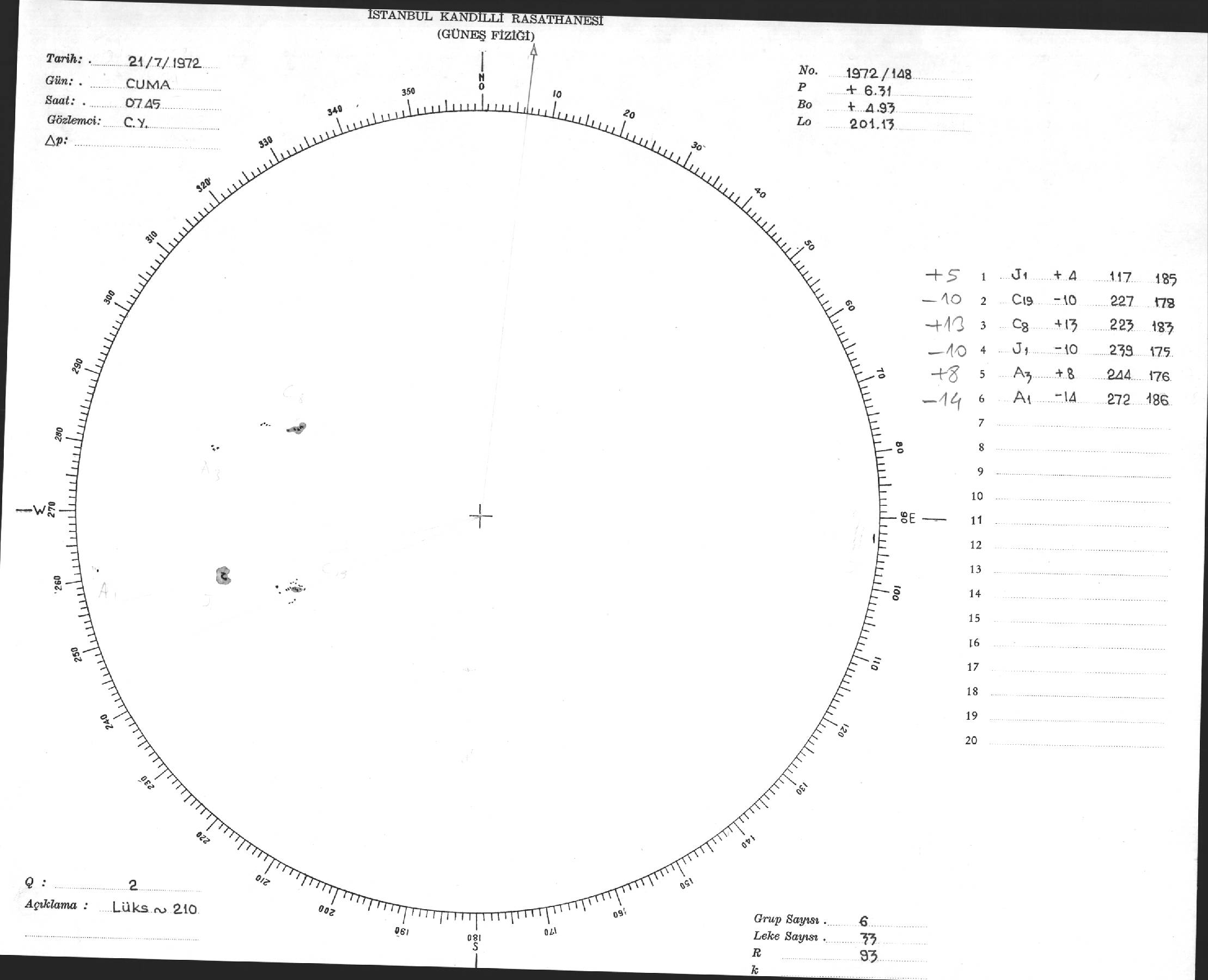 Güneş Lekesi Çizimi - 21.07.1972