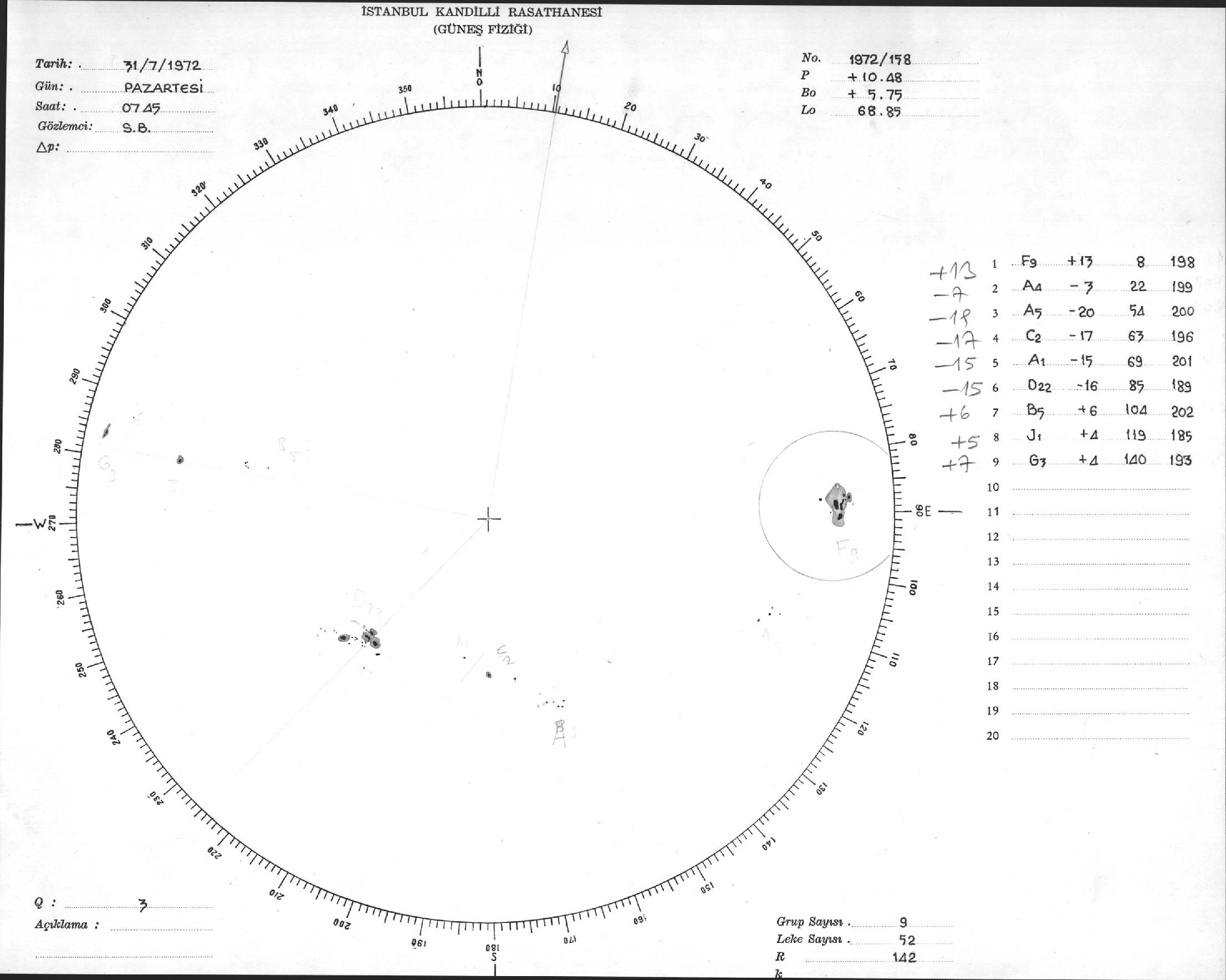 Güneş Lekesi Çizimi - 31.07.1972