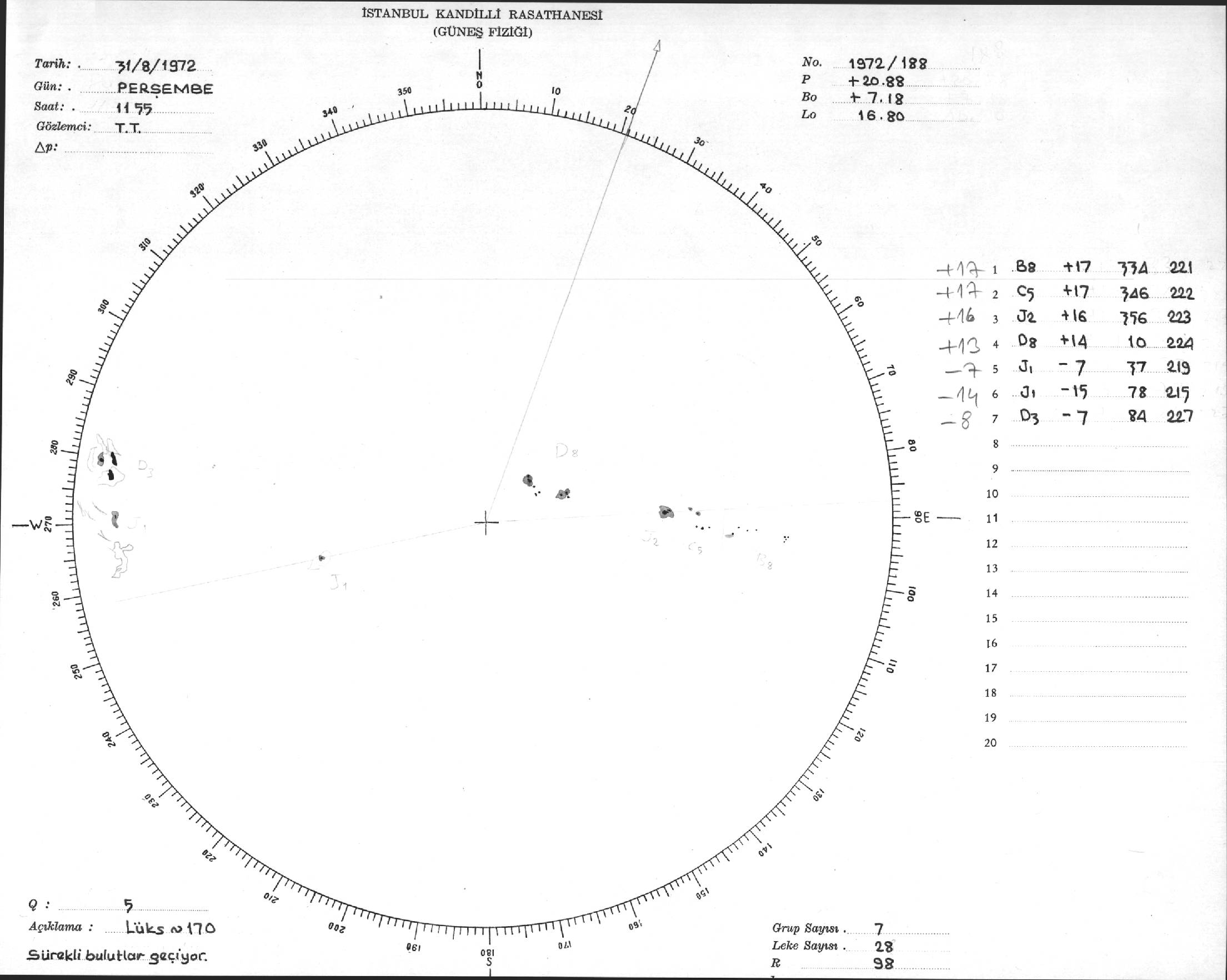 Güneş Lekesi Çizimi - 31.08.1972