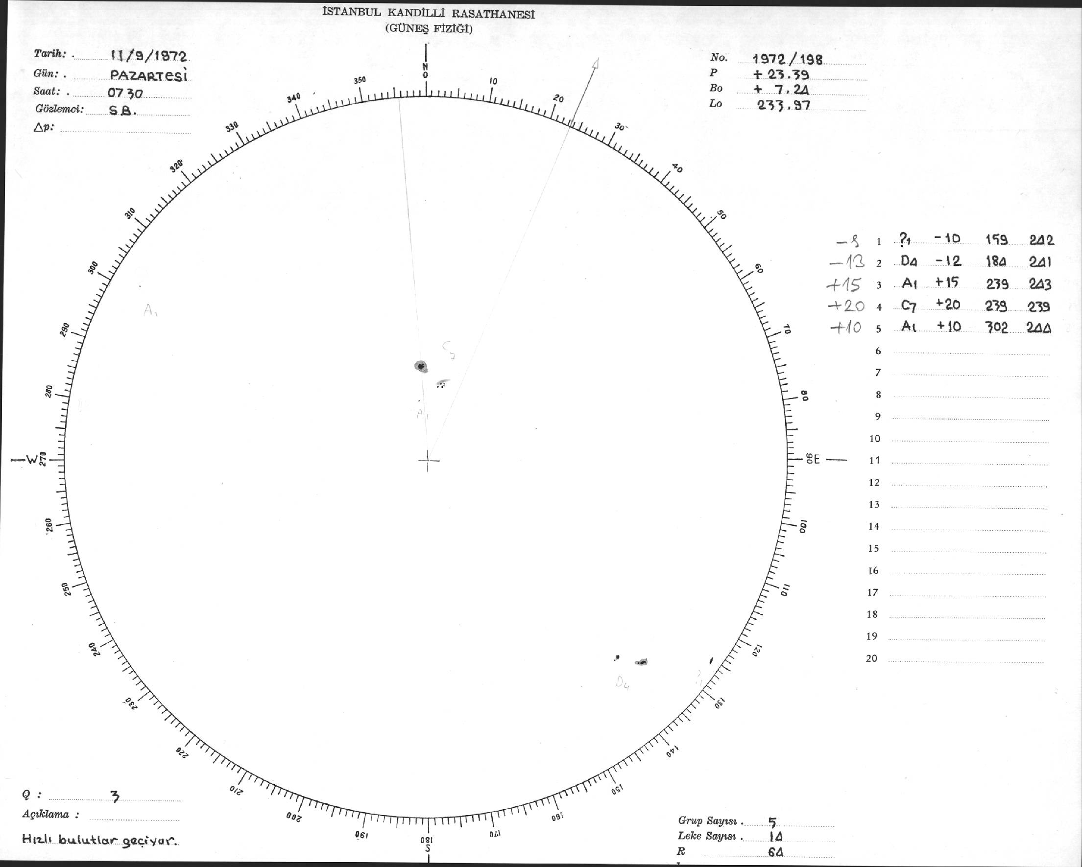 Güneş Lekesi Çizimi - 11.09.1972