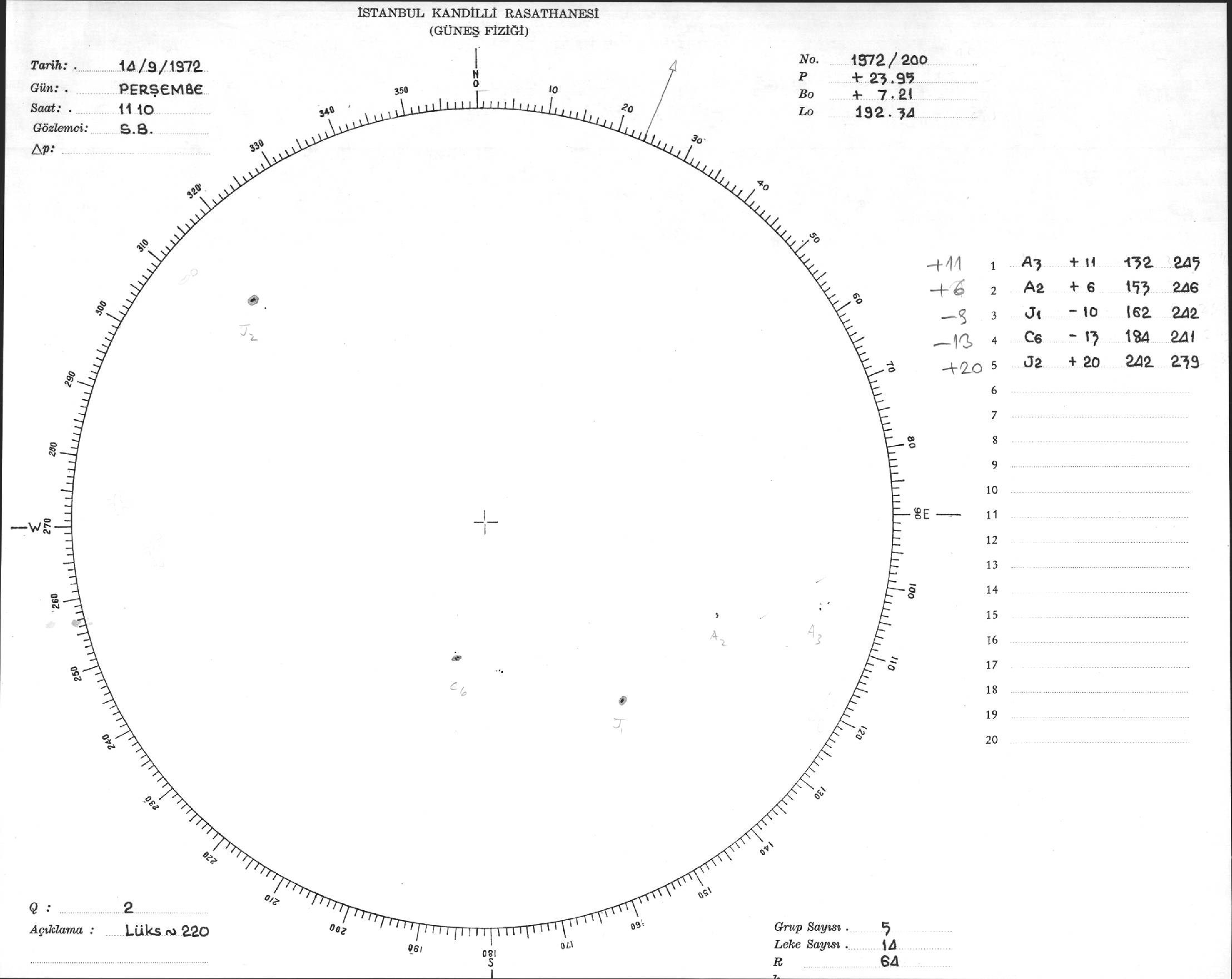 Güneş Lekesi Çizimi - 14.09.1972