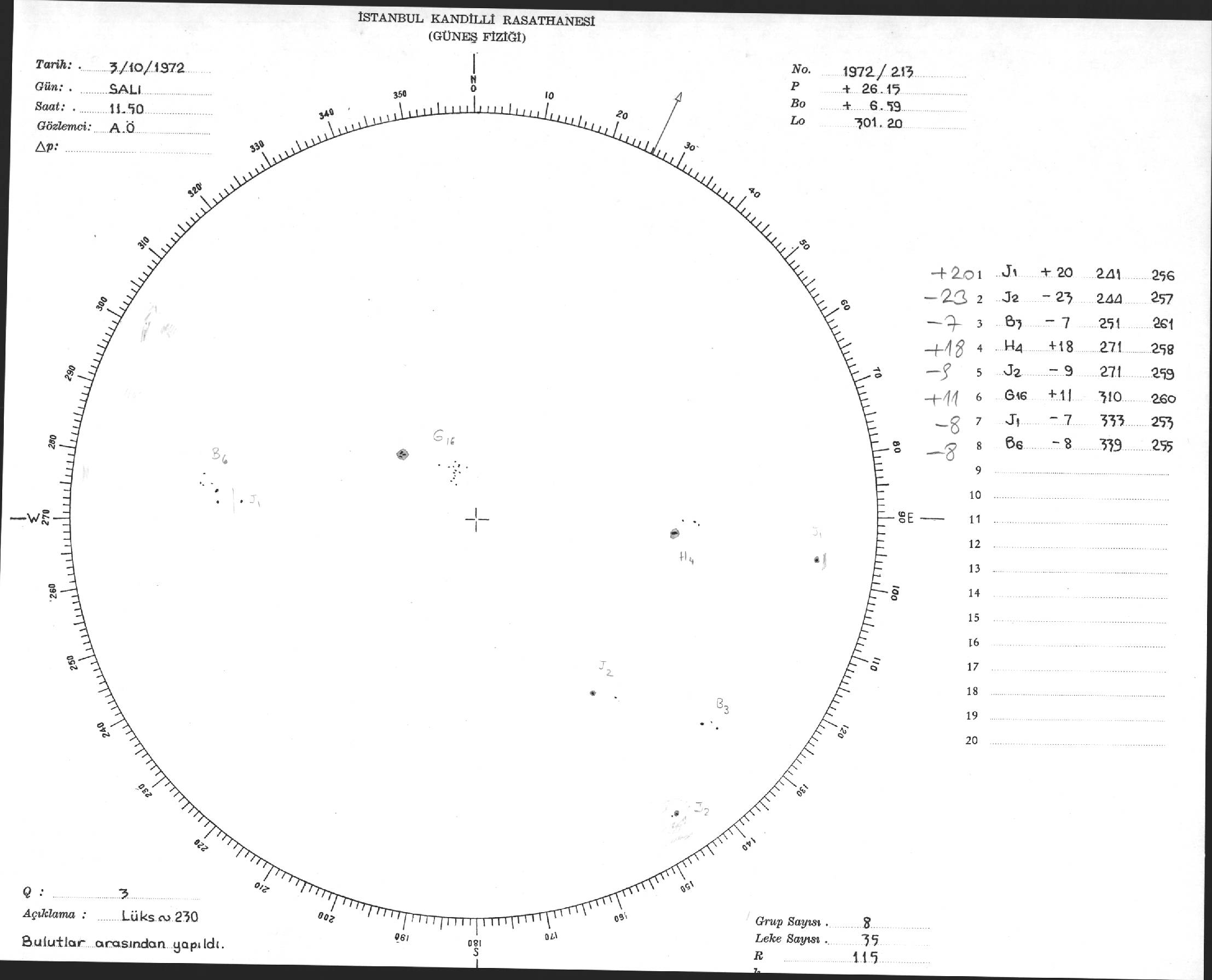 Güneş Lekesi Çizimi - 03.10.1972