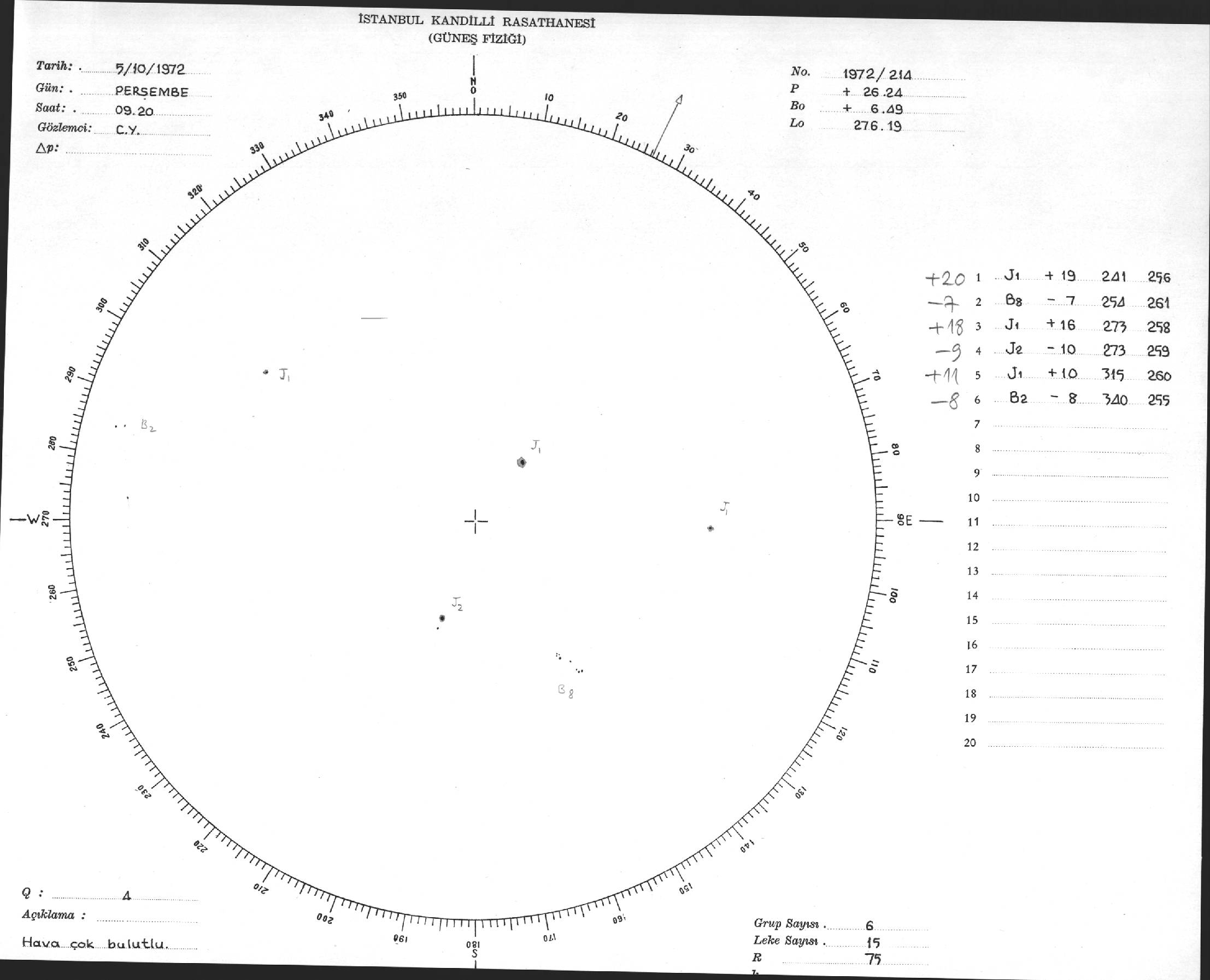 Güneş Lekesi Çizimi - 05.10.1972