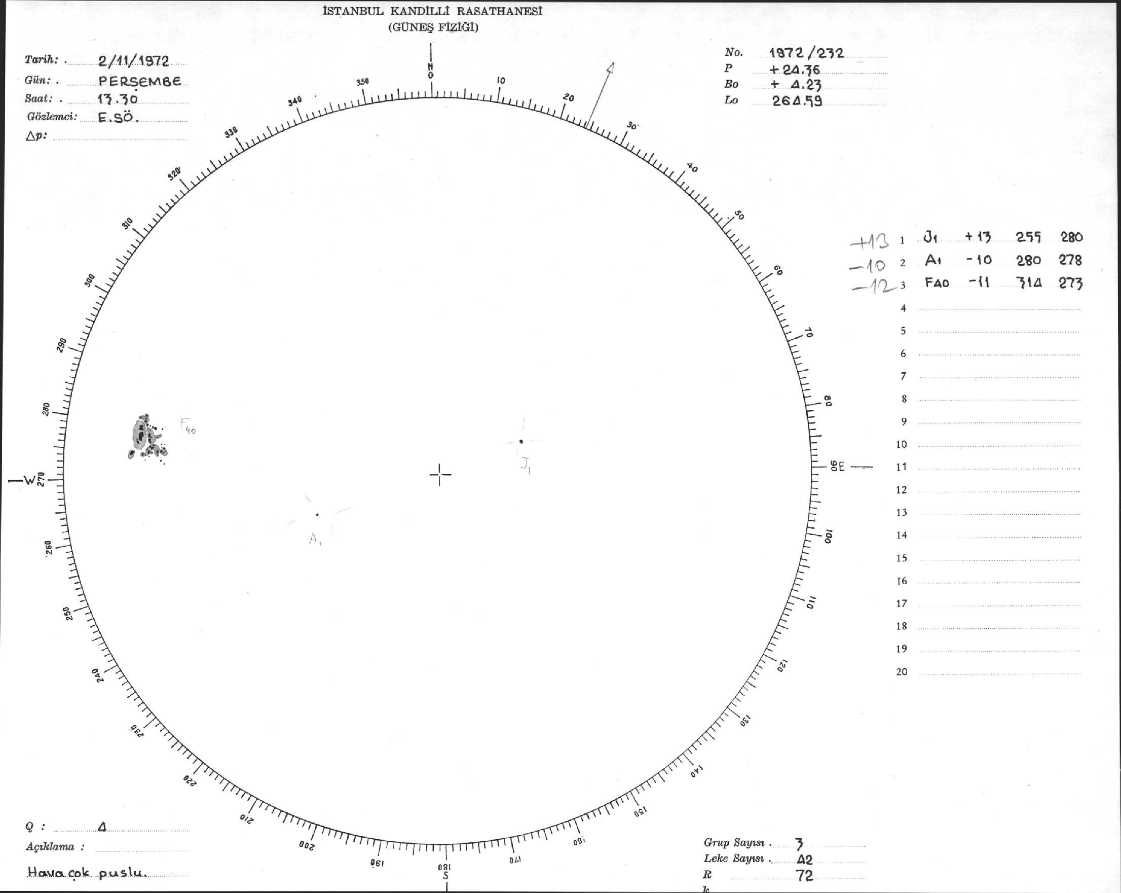 Güneş Lekesi Çizimi - 02.11.1972